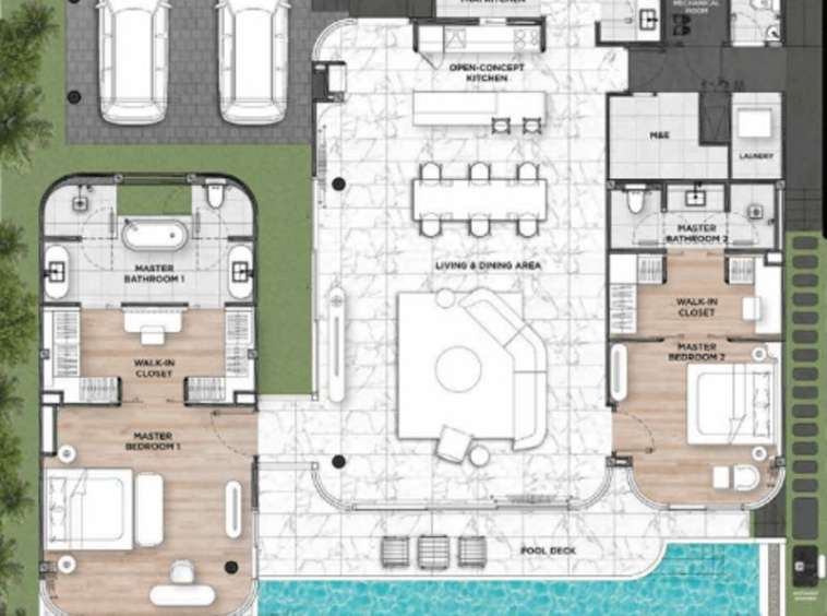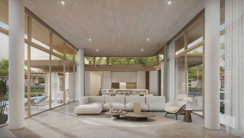 The villa showcases contemporary architecture infused with elements that promote wellness. The open concept design facilitates a seamless flow between living spaces, creating an atmosphere of tranquillity. Each residence is crafted from non-toxic materials, featuring circadian lighting and EMF protection, ensuring a serene and healthier living environment.
