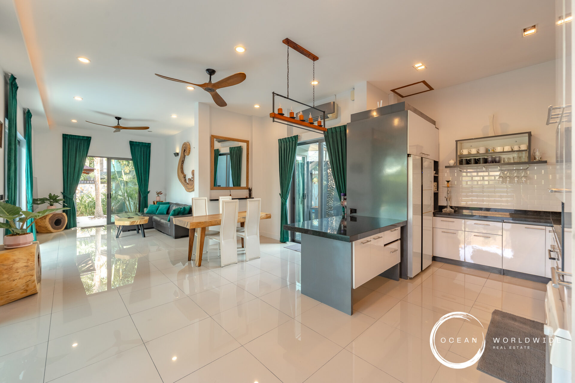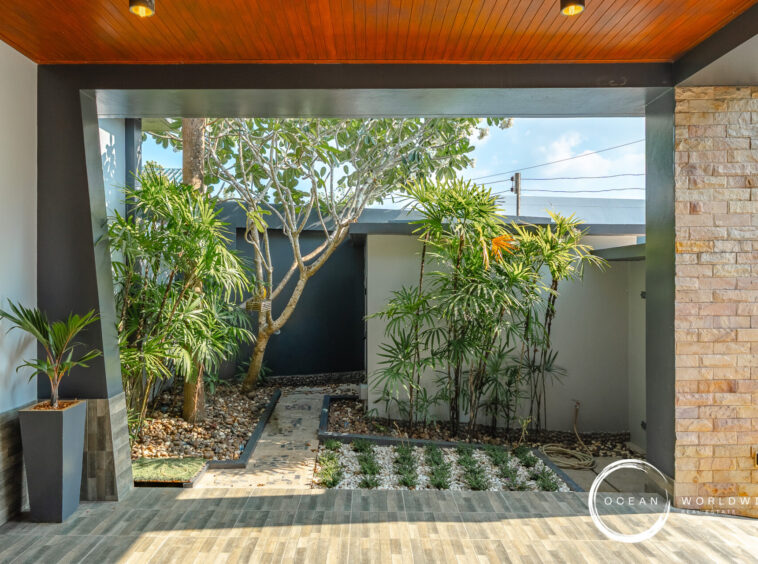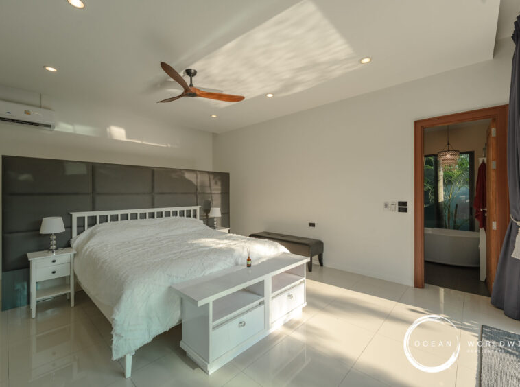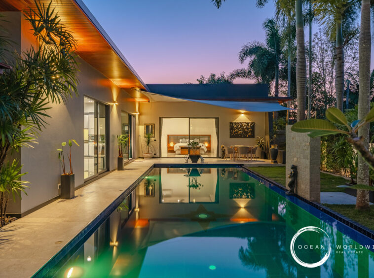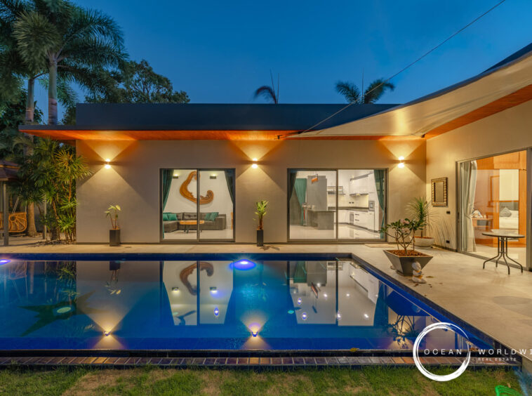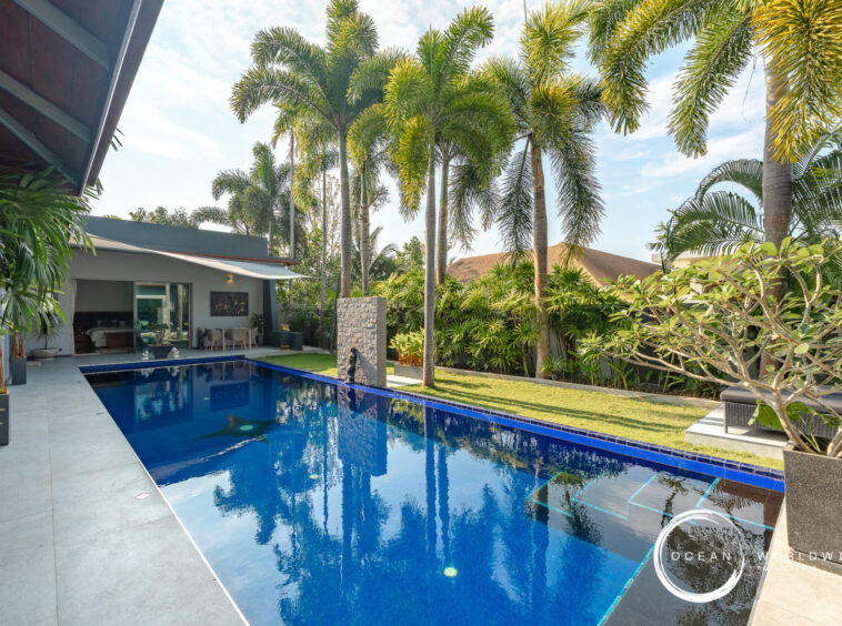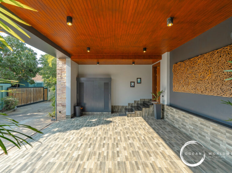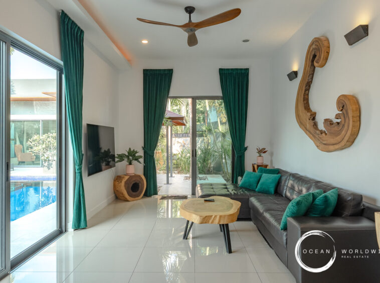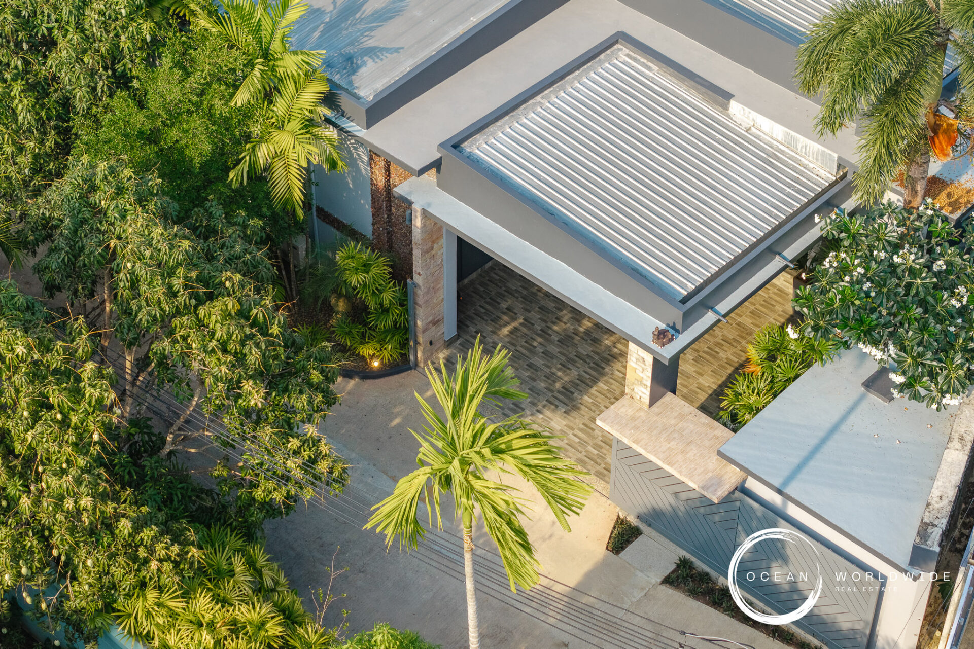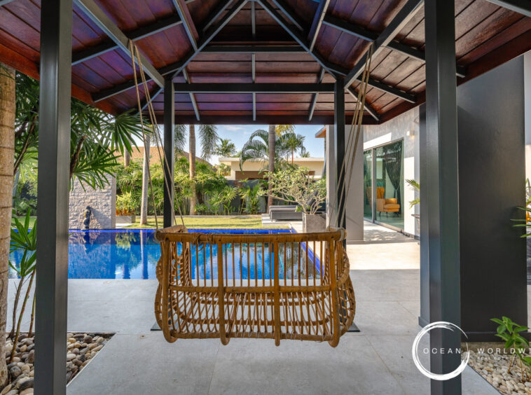 This villa boasts a thoughtfully designed interior that seamlessly integrates spaciousness with comfort. The layout is designed for effortless flow between living, dining, and sleeping areas, complemented by high-quality materials that exude sophistication. Its contemporary architecture is enhanced with traditional Thai elements, creating a welcoming atmosphere perfect for both relaxation and entertaining.