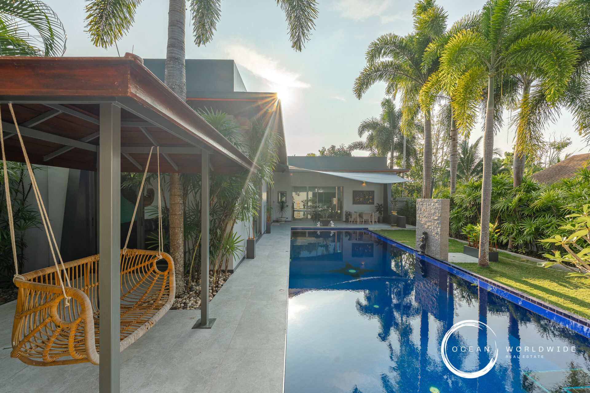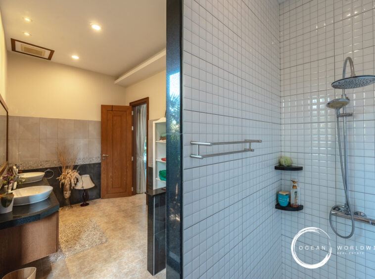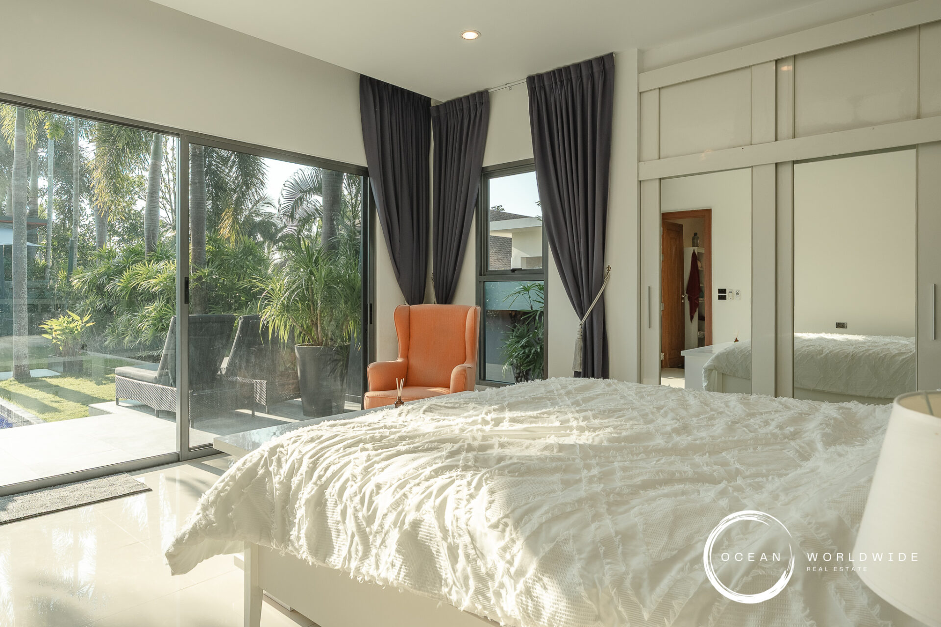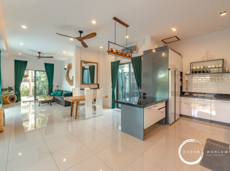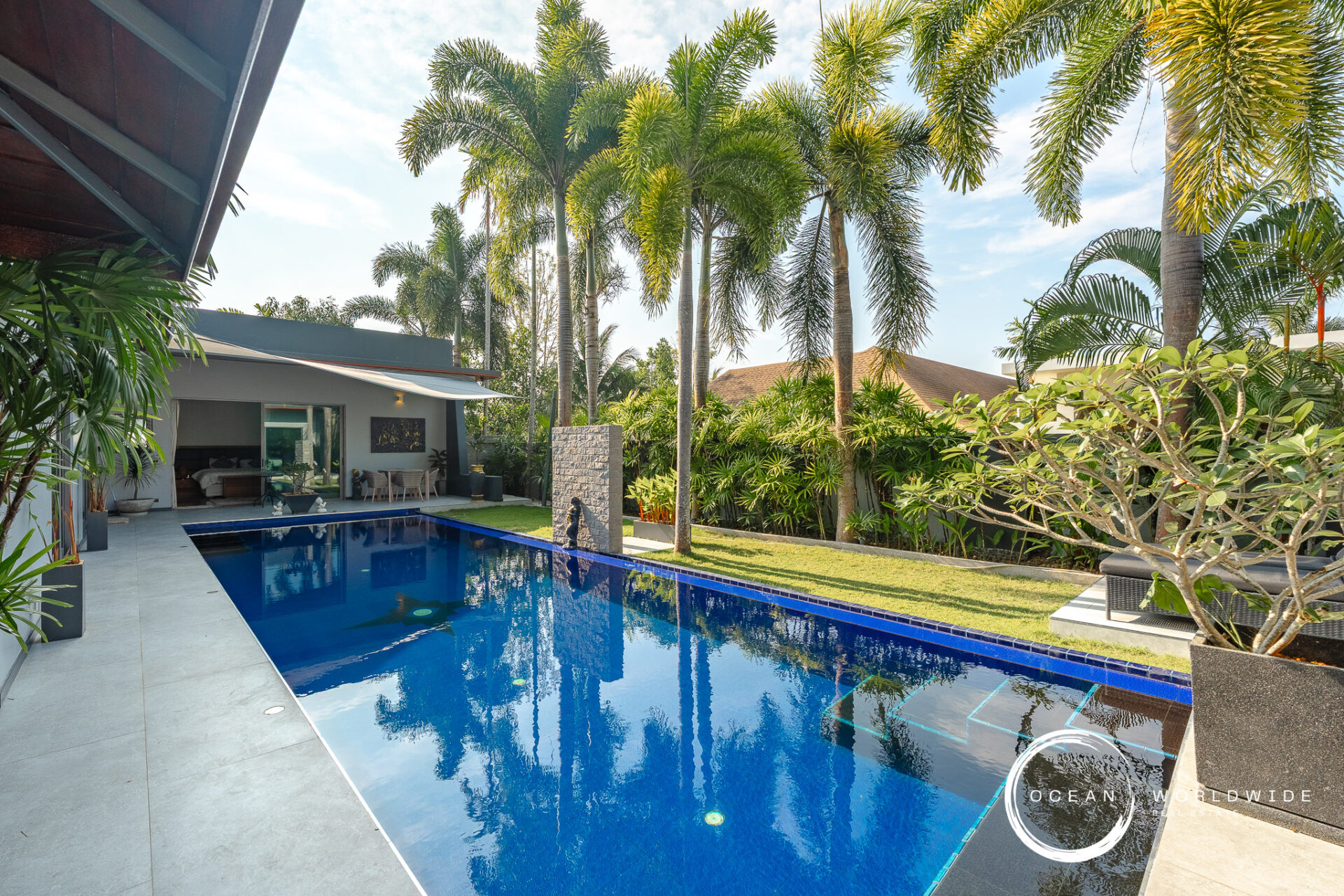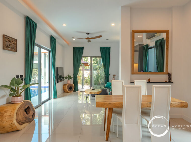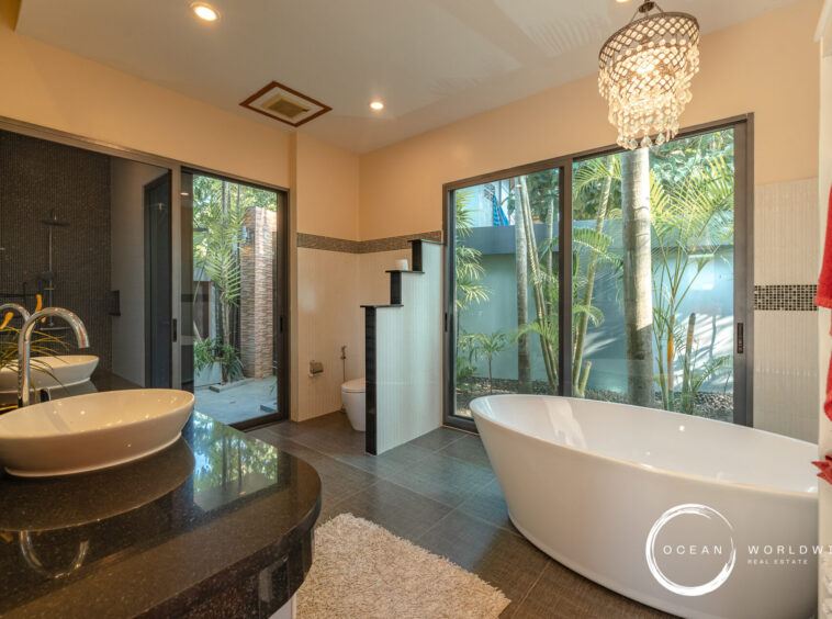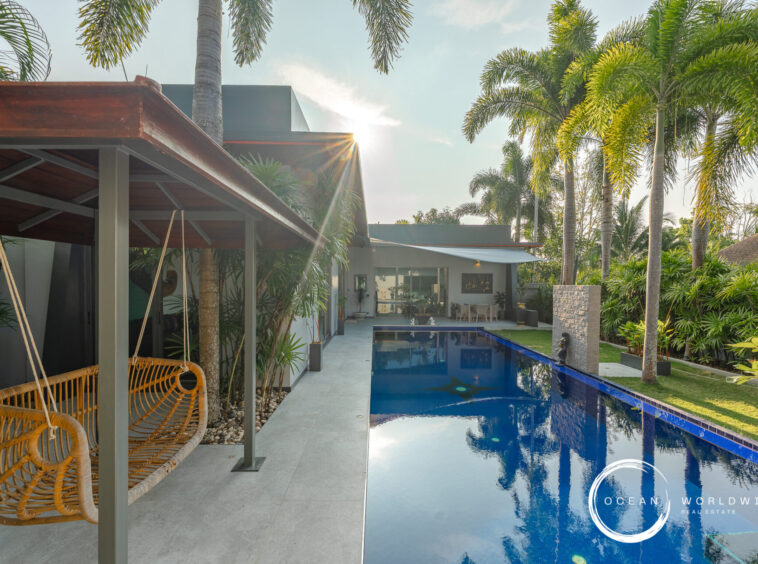 This villa boasts a thoughtfully designed interior that seamlessly integrates spaciousness with comfort. The layout is designed for effortless flow between living, dining, and sleeping areas, complemented by high-quality materials that exude sophistication. Its contemporary architecture is enhanced with traditional Thai elements, creating a welcoming atmosphere perfect for both relaxation and entertaining.