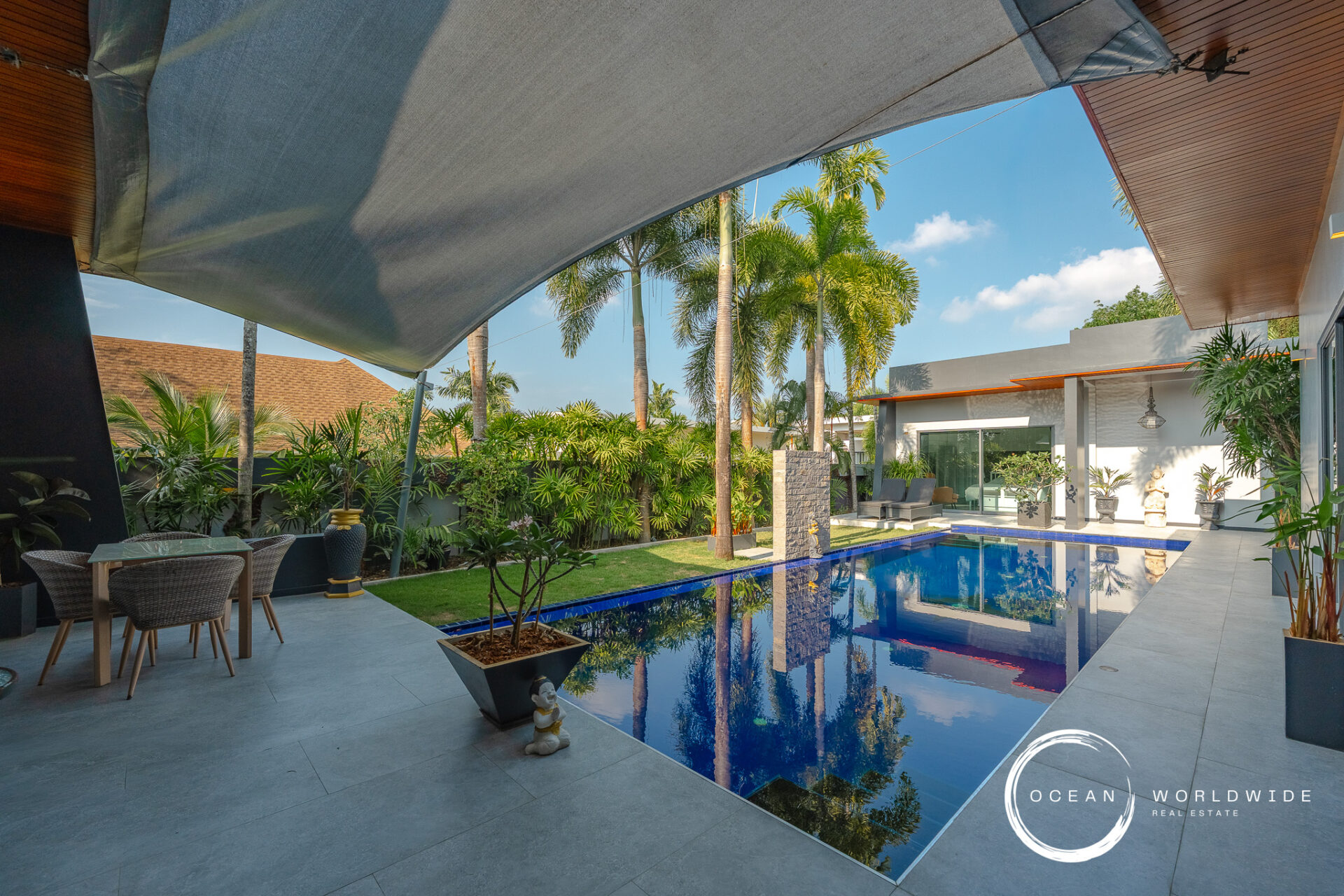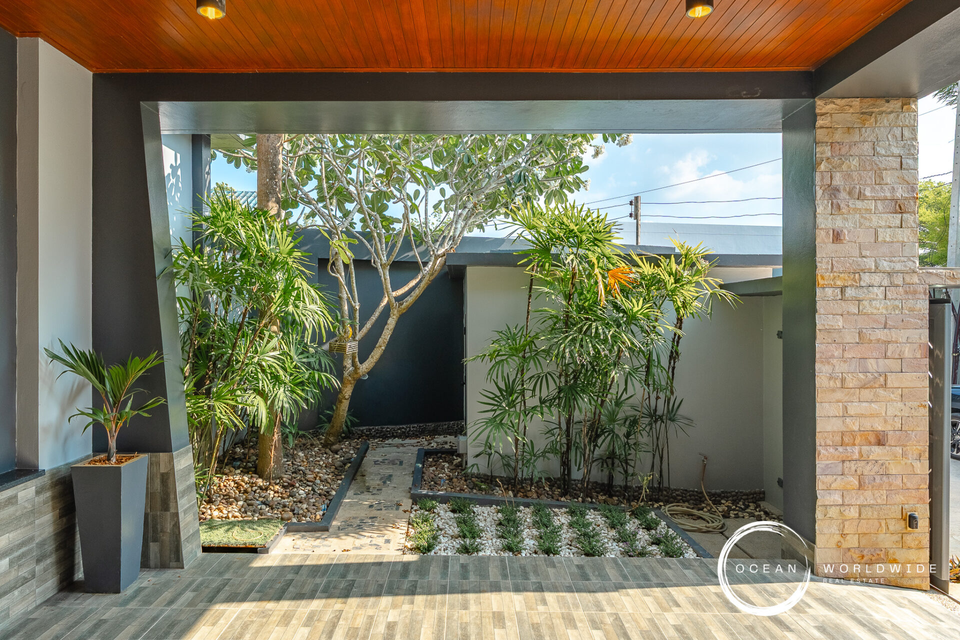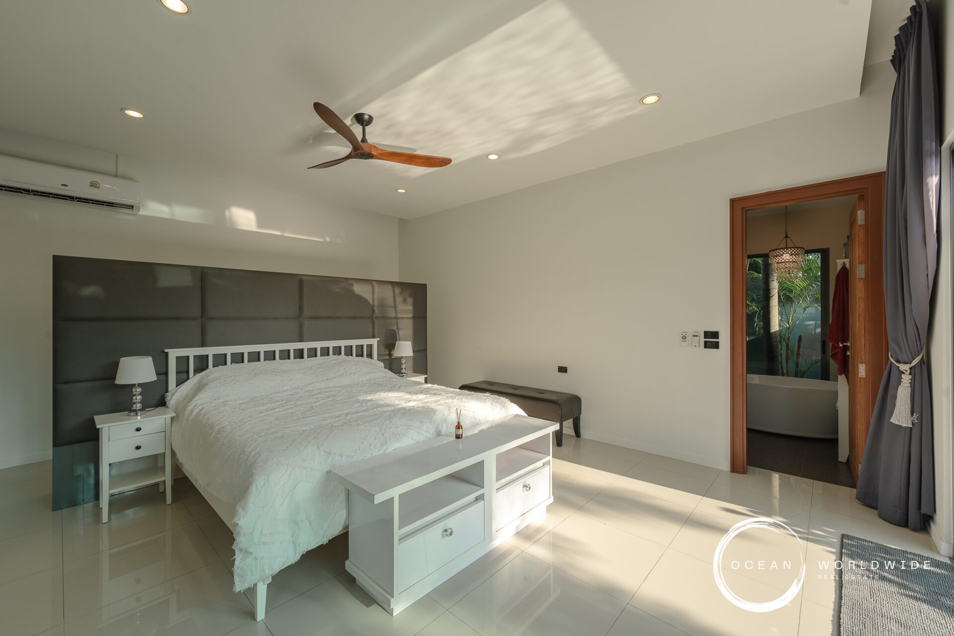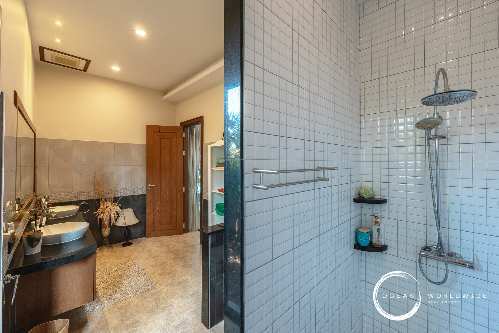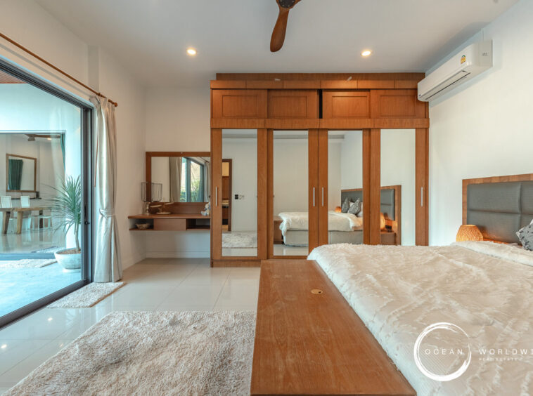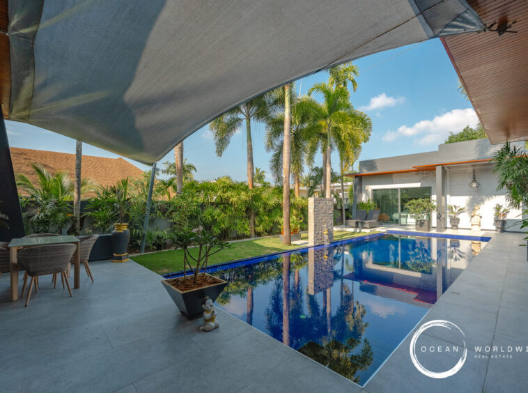 This villa boasts a thoughtfully designed interior that seamlessly integrates spaciousness with comfort. The layout is designed for effortless flow between living, dining, and sleeping areas, complemented by high-quality materials that exude sophistication. Its contemporary architecture is enhanced with traditional Thai elements, creating a welcoming atmosphere perfect for both relaxation and entertaining.