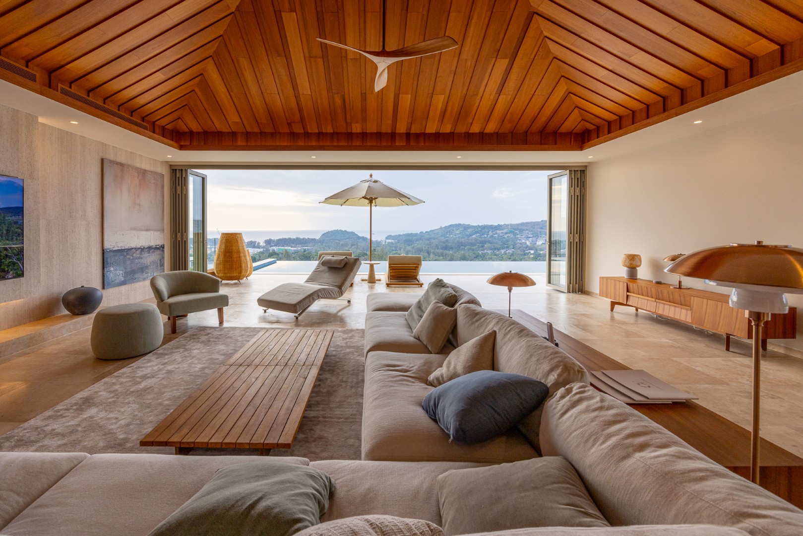 The outdoor space is designed for enjoyment and tranquillity, featuring beautifully landscaped gardens and a charming terrace that leads to a refreshing dip pool. The saltwater pool is complemented by a heated jacuzzi, ideal for indulgent relaxation. Privacy is effortlessly maintained, allowing you to unwind in your exquisite sunken Sala while soaking in the panoramic views.