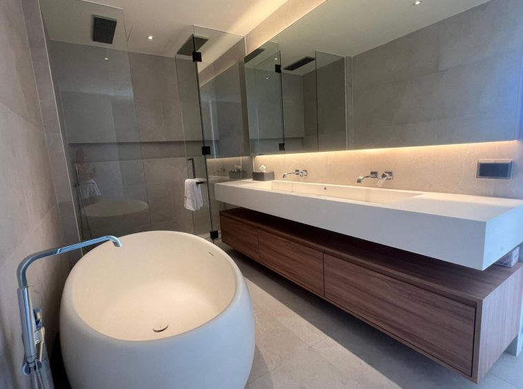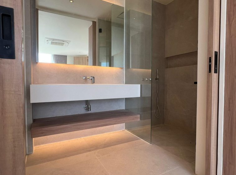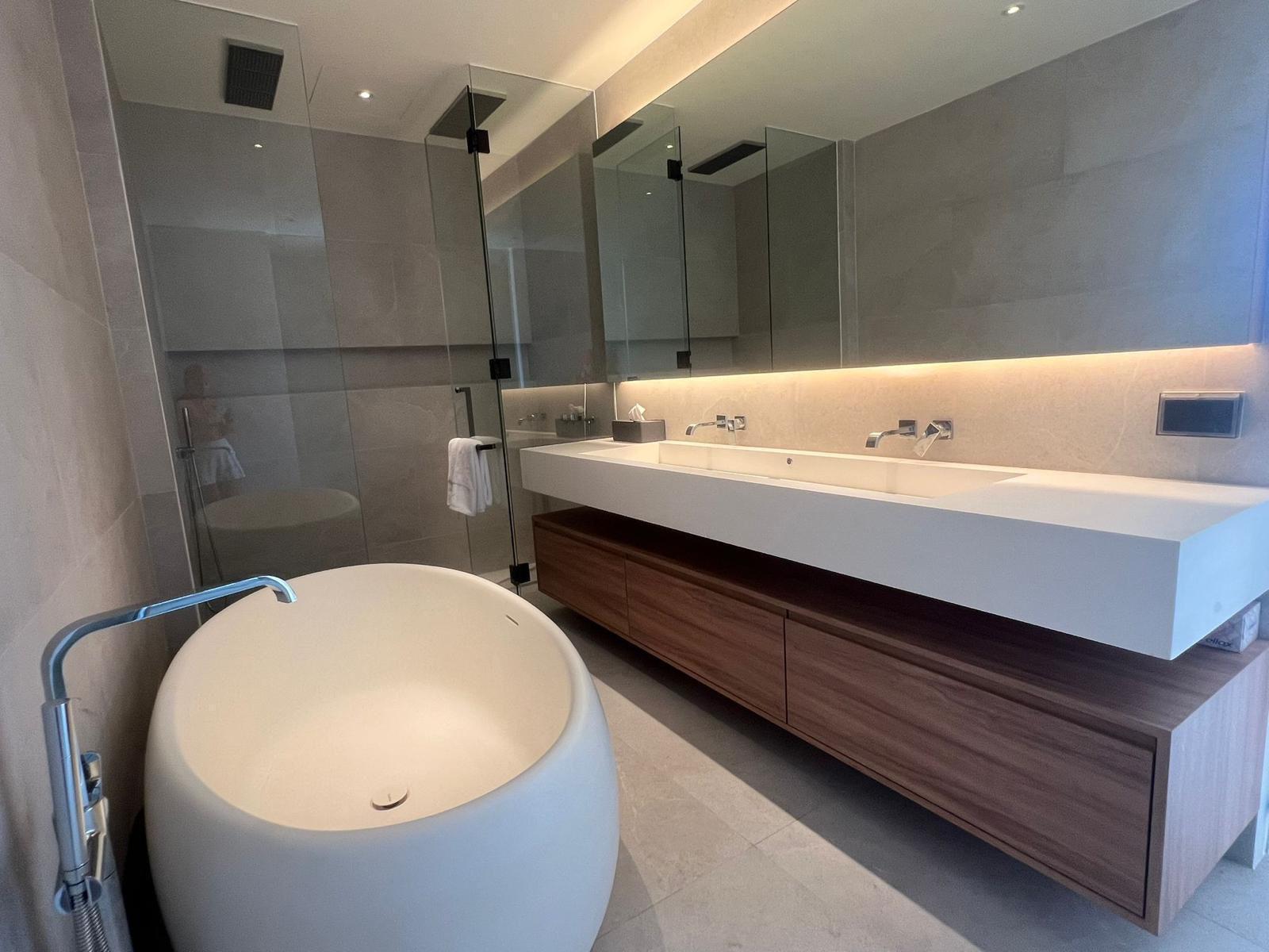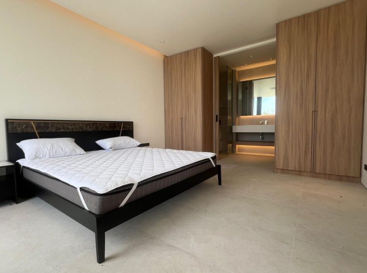 The layout of this villa promotes an effortless flow between spaces, with a balanced blend of living areas that cater to both social gatherings and quiet evenings. The architecture reflects a modern style emphasised with high-quality materials, ensuring a sense of sophistication and warmth. Natural light floods the interiors, enhancing the serene atmosphere and highlighting the exquisite design details throughout.