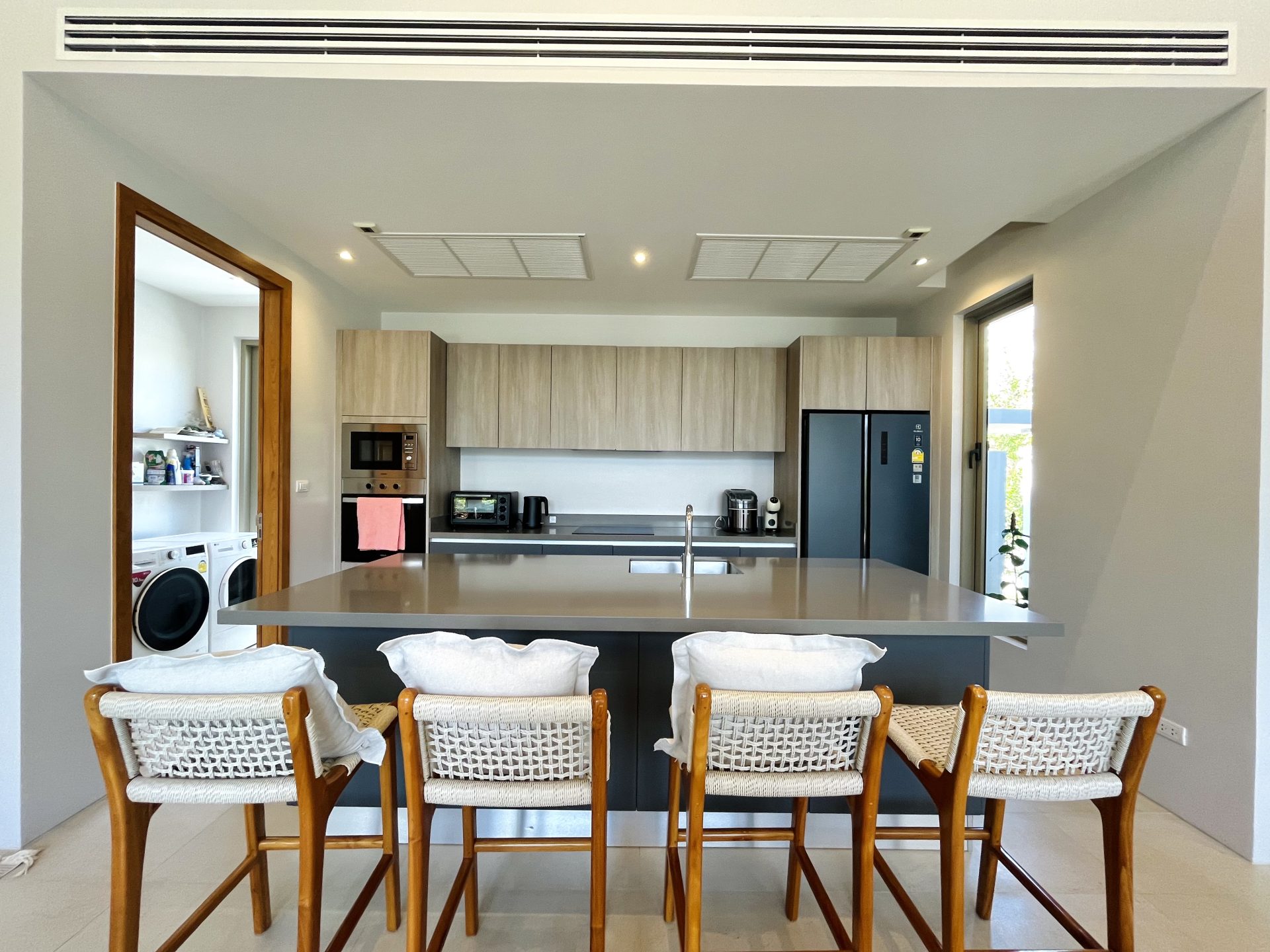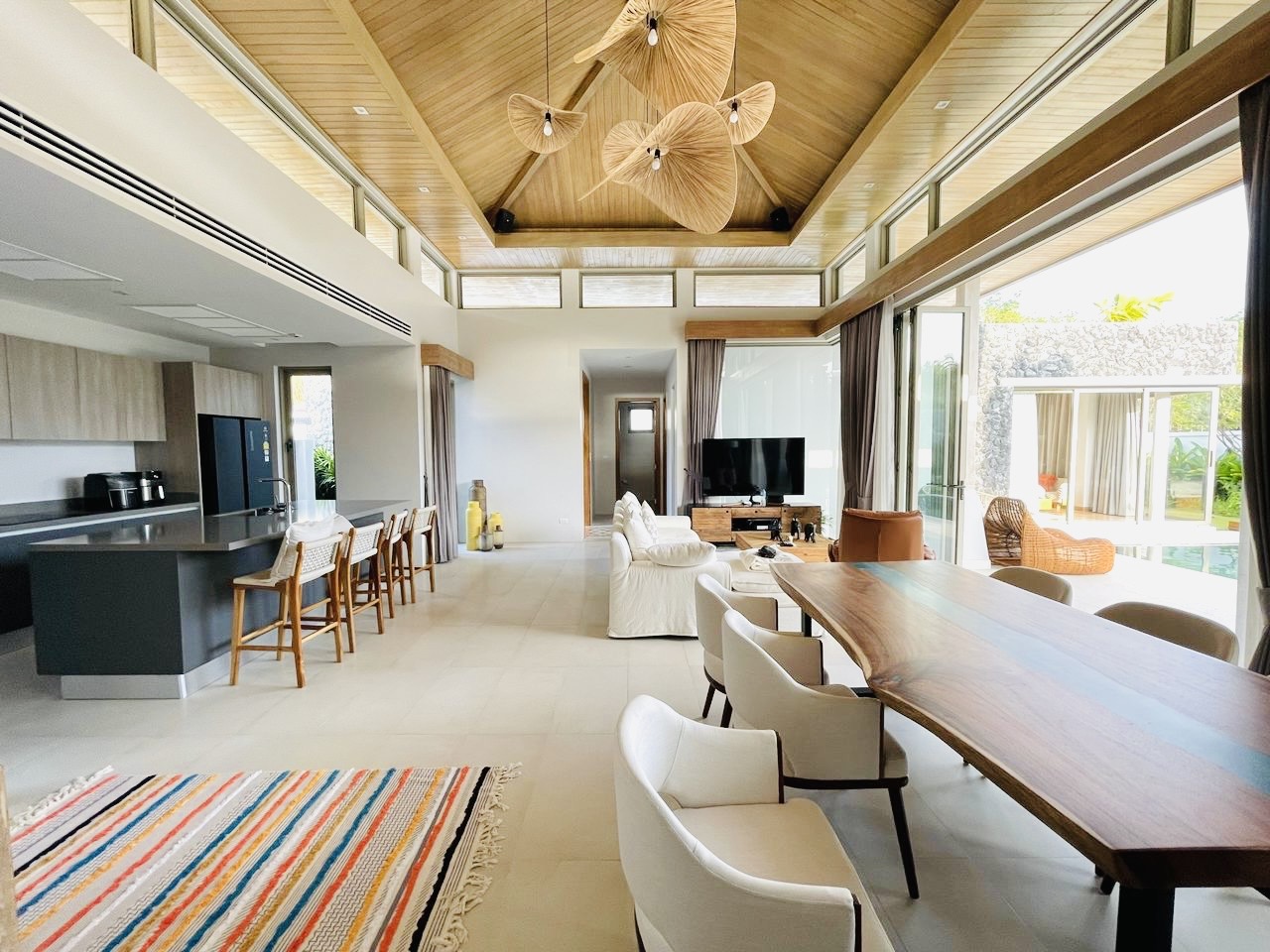 Inside, the villa boasts a thoughtfully designed layout that fosters a natural flow between spaces. The architecture seamlessly blends modern aesthetics with traditional Thai elements, ensuring a warm and inviting atmosphere. High-quality materials and finishes reflect a commitment to craftsmanship and elegance, making every room a pleasure to inhabit.