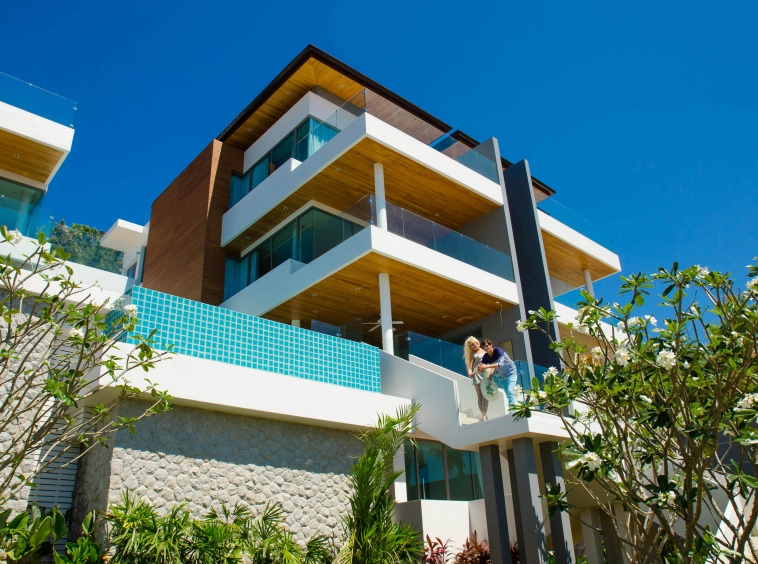 These magnificent four-bedroom villas are perched on a secluded Rawai hillside. Floor-to-ceiling windows in almost every room give this ultra-modern villa an abundance of natural light. The modern architecture is accentuated with many antique pieces, natural wood furniture, and handsome interior design features for the perfect combination of comfort and style – a truly exceptional living experience.