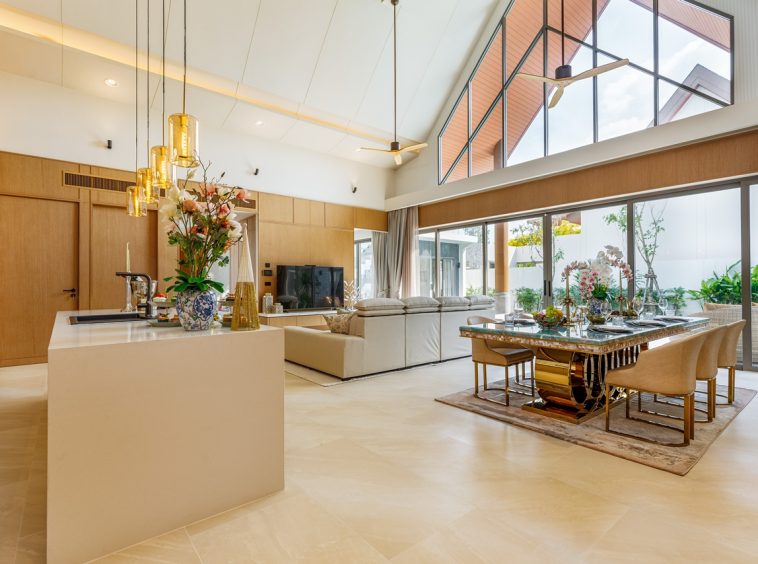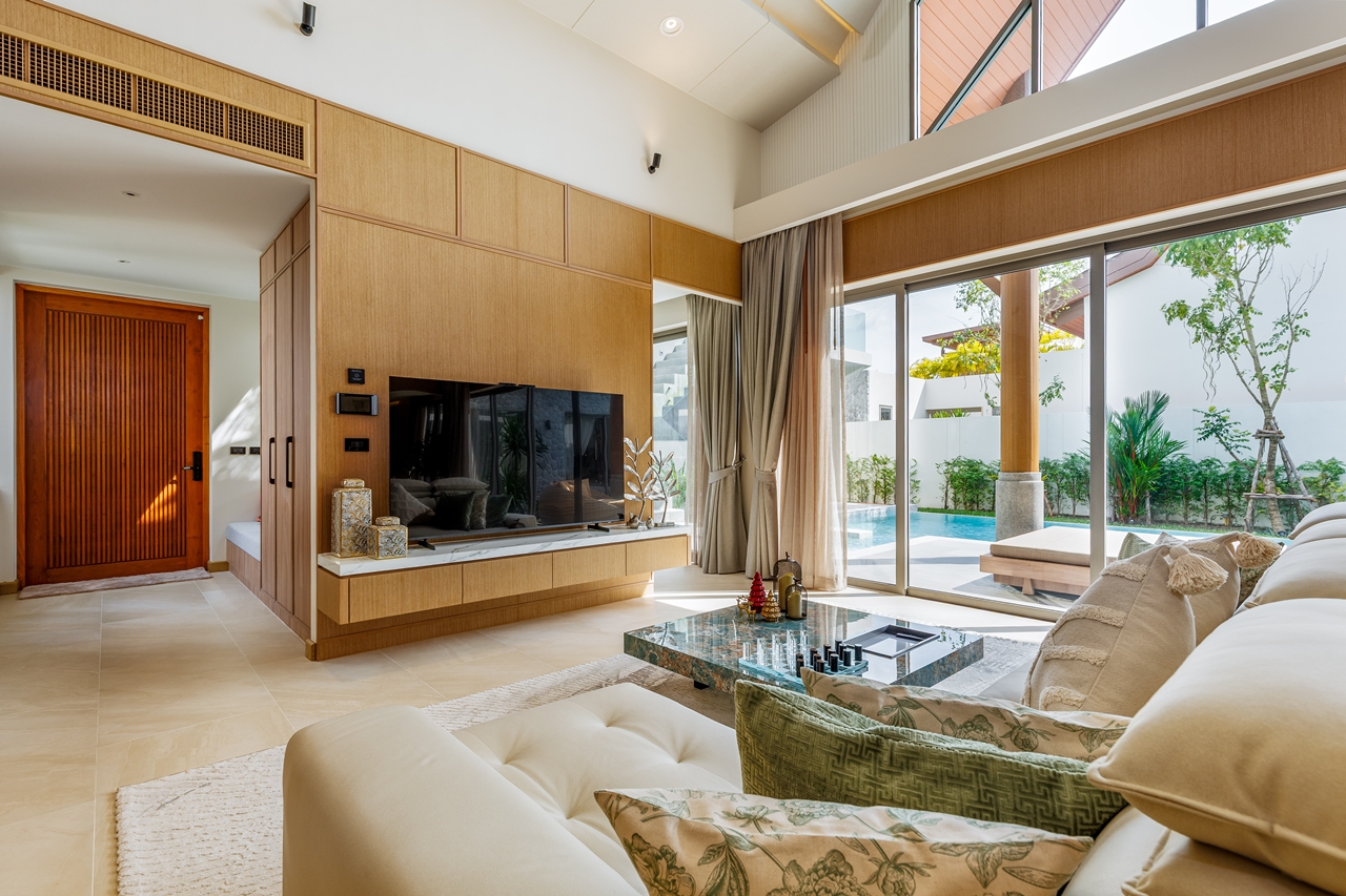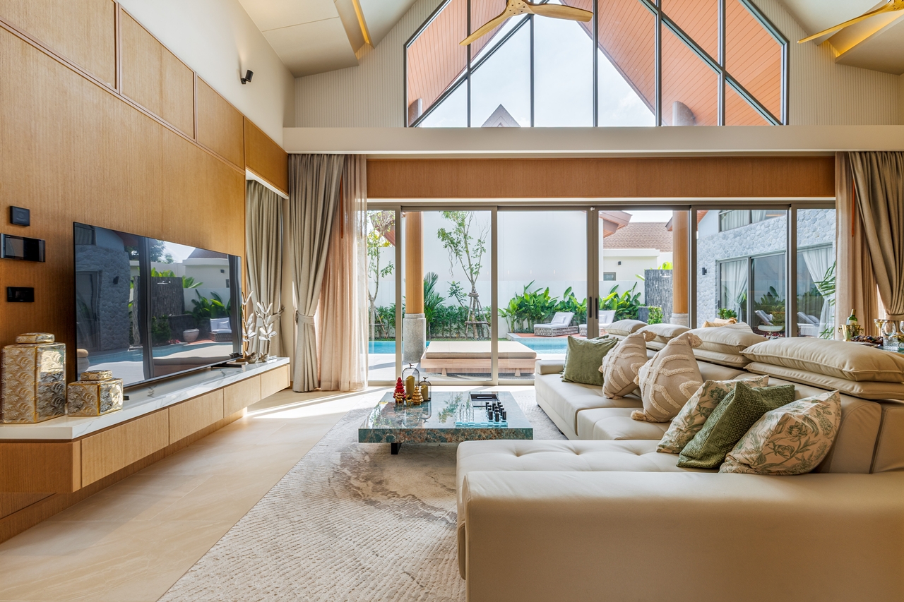 The interior layout of this villa is meticulously designed to foster a harmonious flow between indoor and outdoor environments. The architectural style reflects modern aesthetics imbued with tropical influences, utilising high-quality materials that resonate with luxury. Each room is thoughtfully positioned to maximise views of the surrounding greenery, creating an uplifting atmosphere.