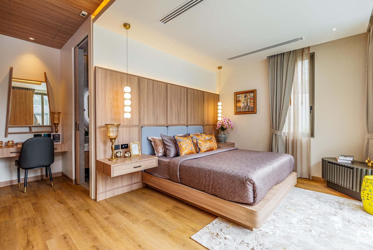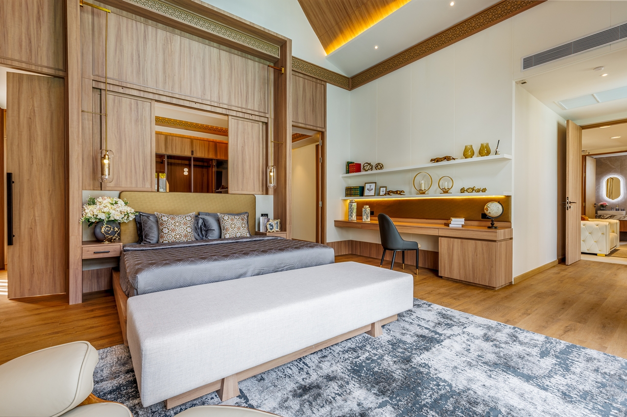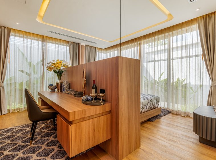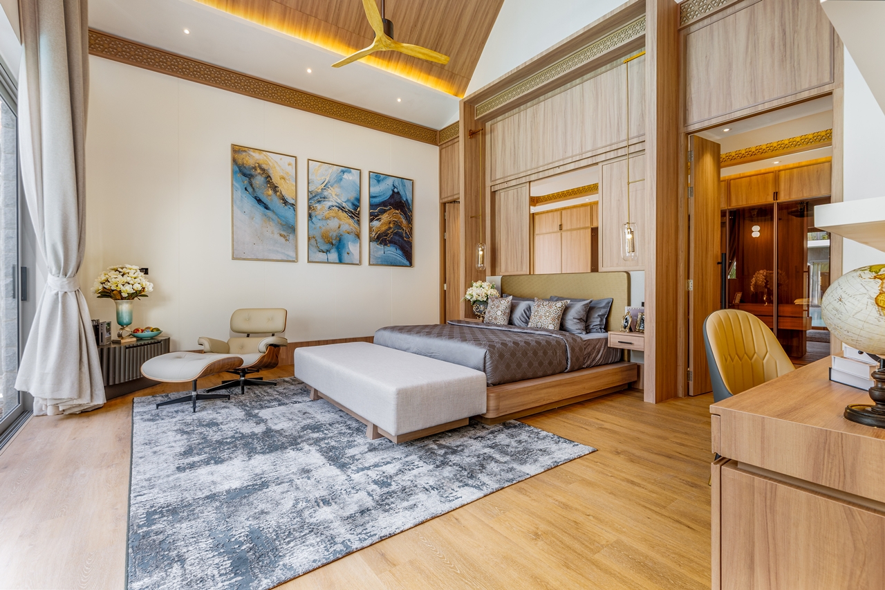 The interior layout of this villa is meticulously designed to foster a harmonious flow between indoor and outdoor environments. The architectural style reflects modern aesthetics imbued with tropical influences, utilising high-quality materials that resonate with luxury. Each room is thoughtfully positioned to maximise views of the surrounding greenery, creating an uplifting atmosphere.