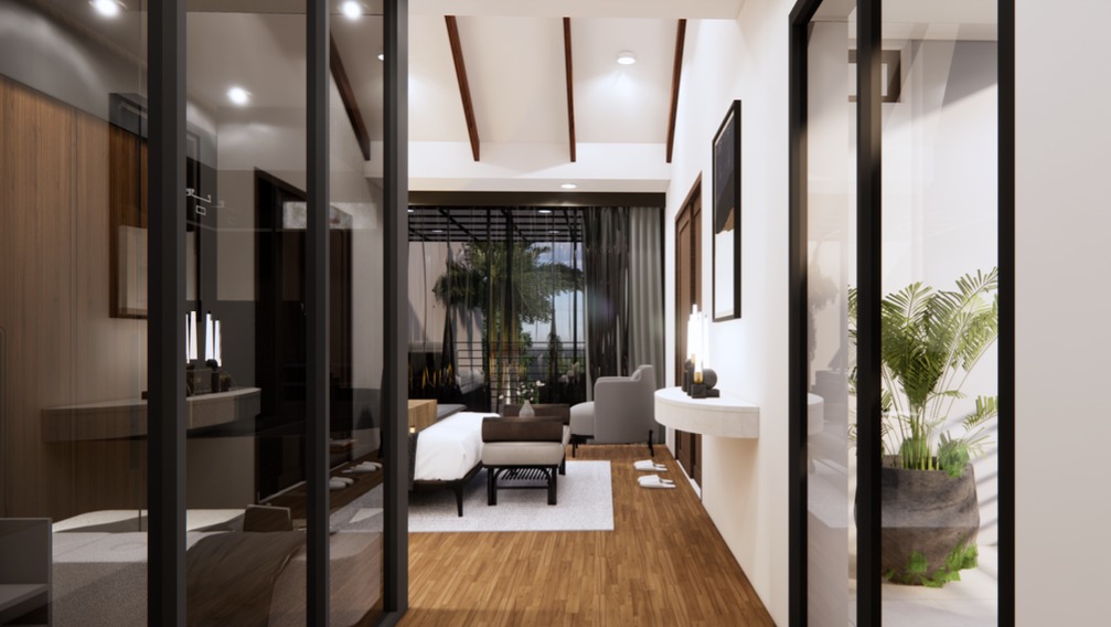 One of the villa’s standout features is its location. Situated just a 5-minute drive from Layan Beach, one of Phuket’s most pristine and peaceful beaches, you’ll enjoy easy access to the sea while living in a quiet, residential area. The surrounding area offers a perfect balance between nature and convenience, with restaurants, shopping centers, and recreational activities nearby.