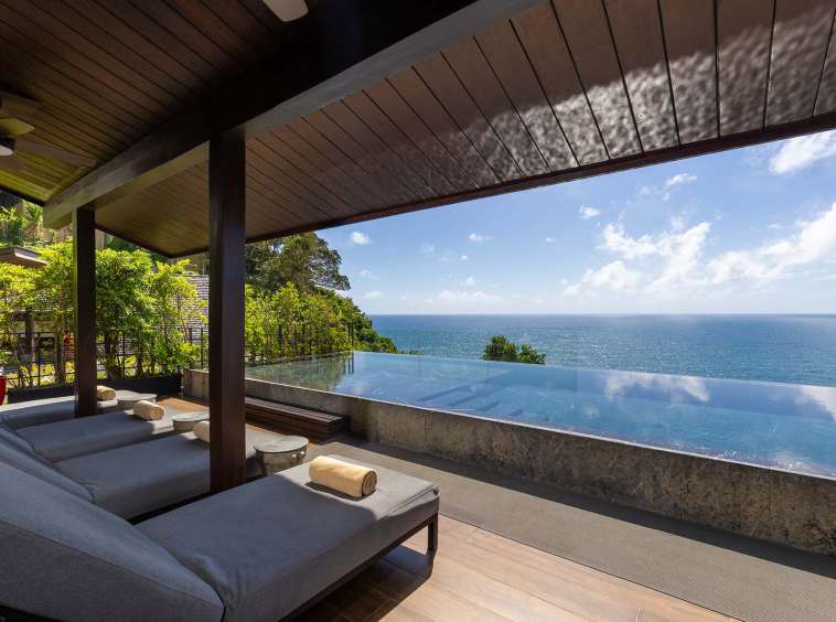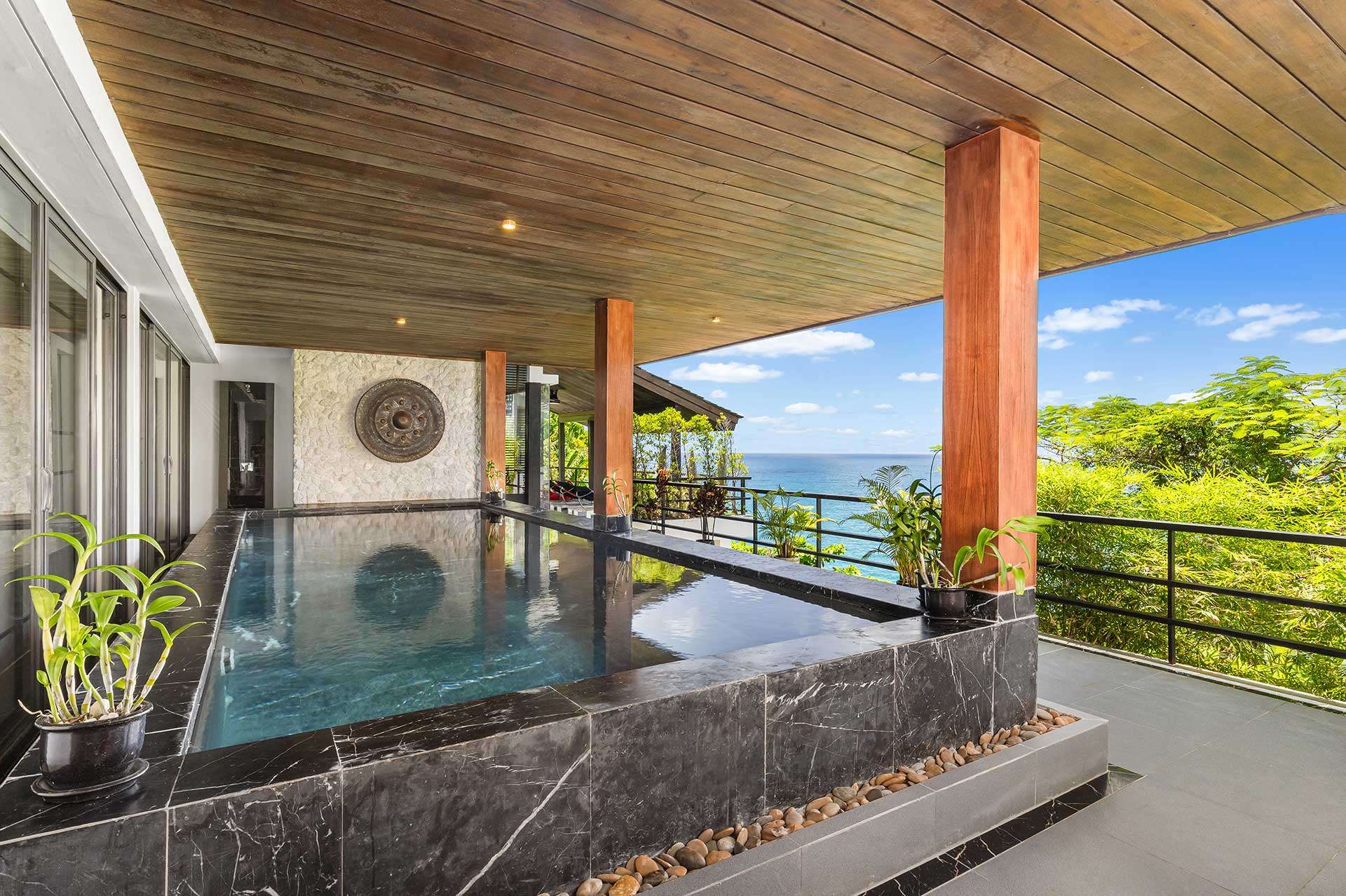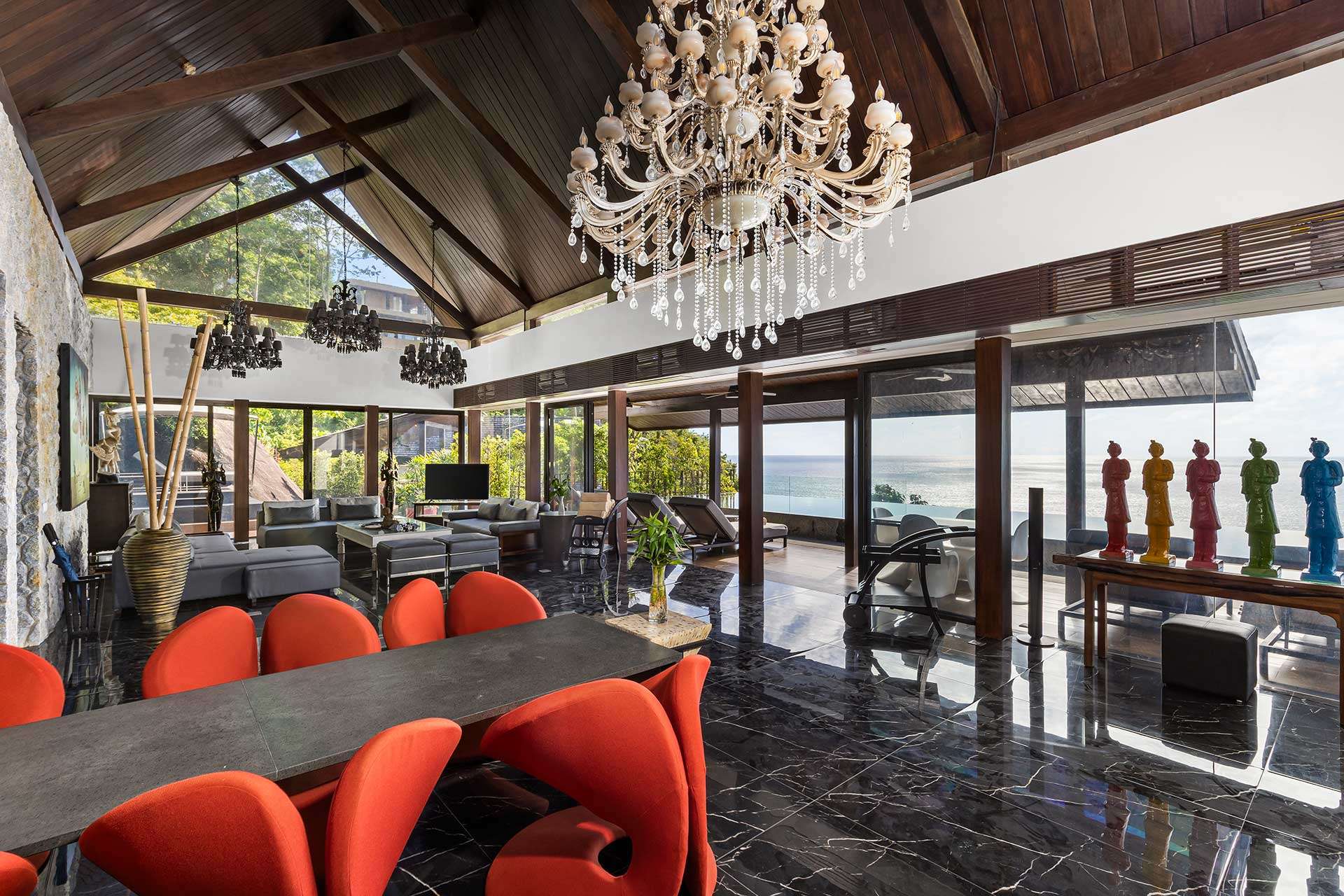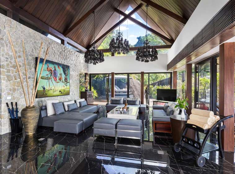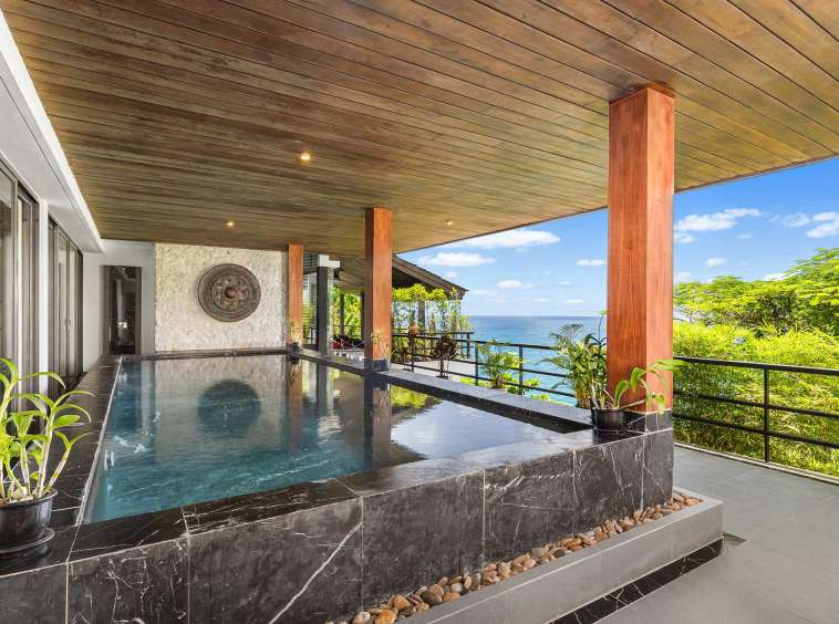 The outdoor space is a true highlight, featuring lush gardens and an impressive infinity pool that overlooks the stunning seaview. The privacy elements are thoughtfully integrated, creating a peaceful oasis perfect for leisure and gatherings. The covered pool in the second building offers a retreat for relaxation, complementing the vibrant outdoor lifestyle in Phuket.