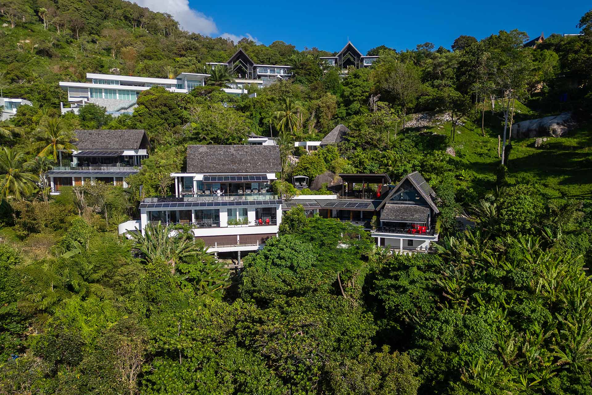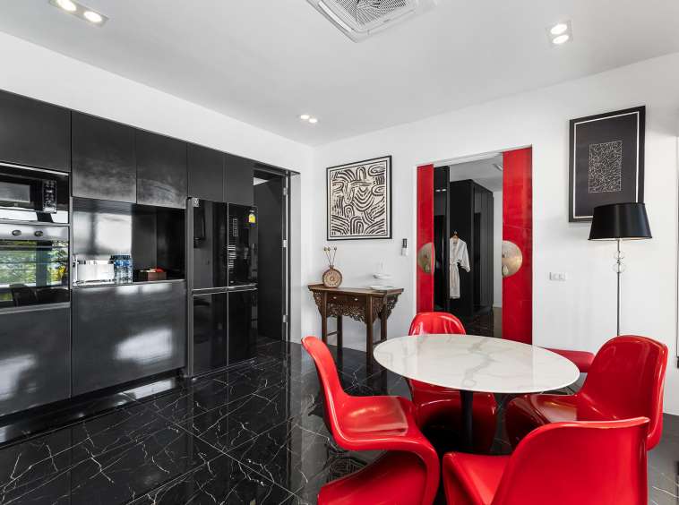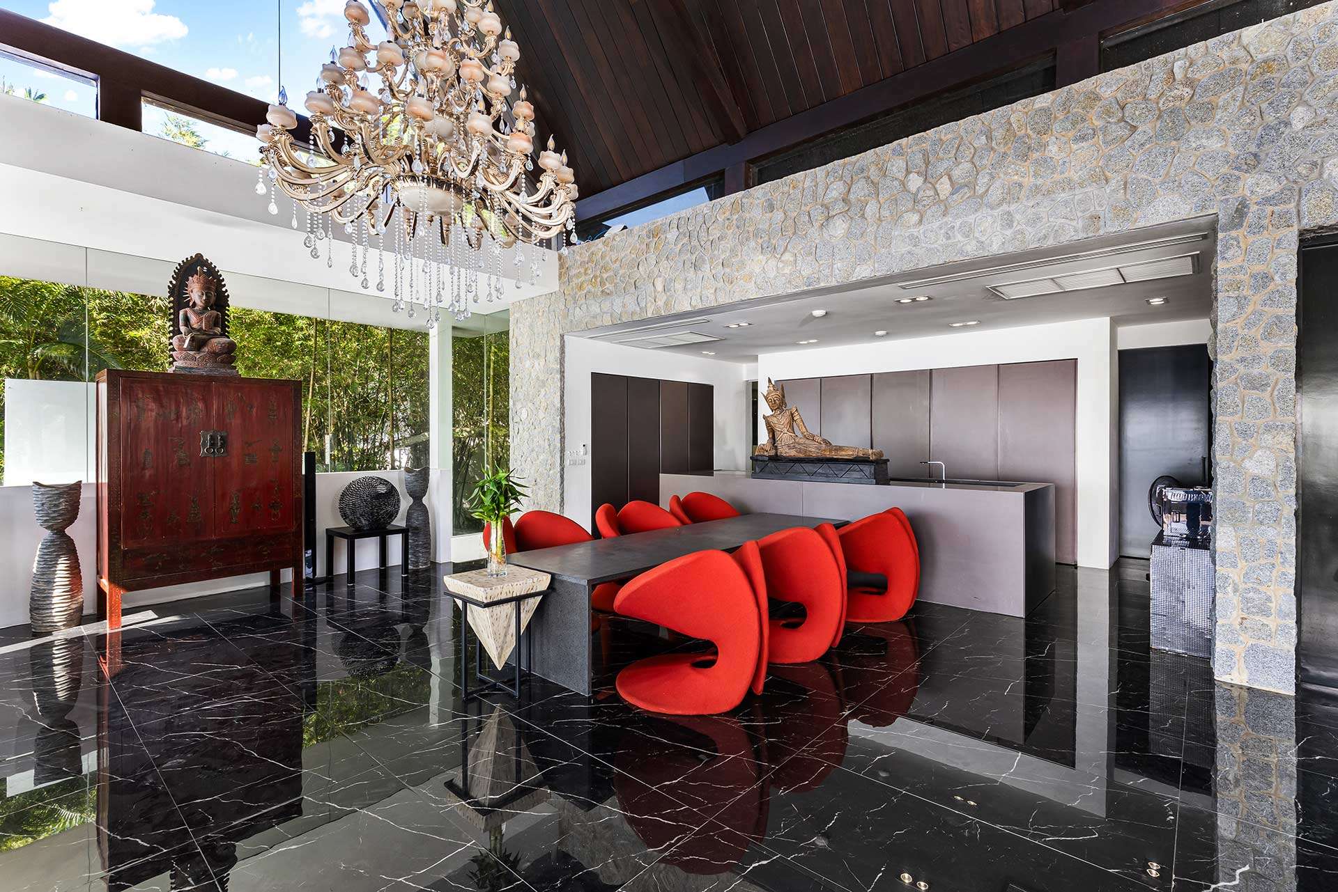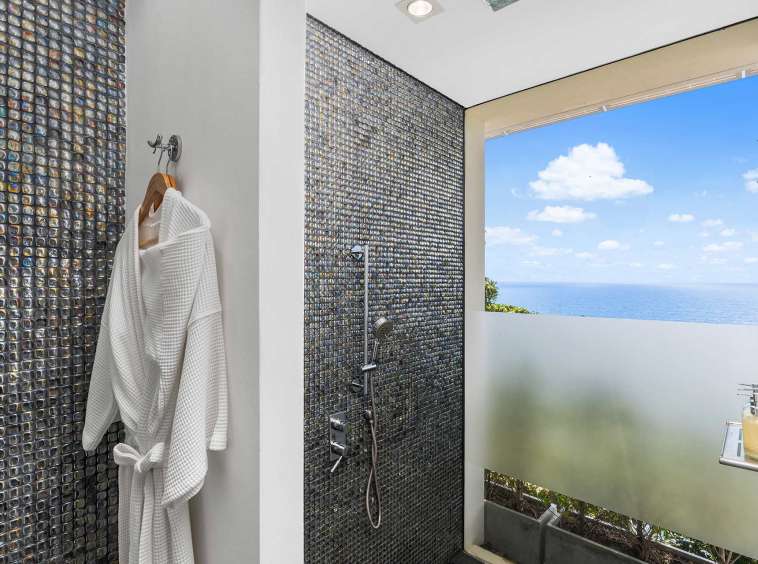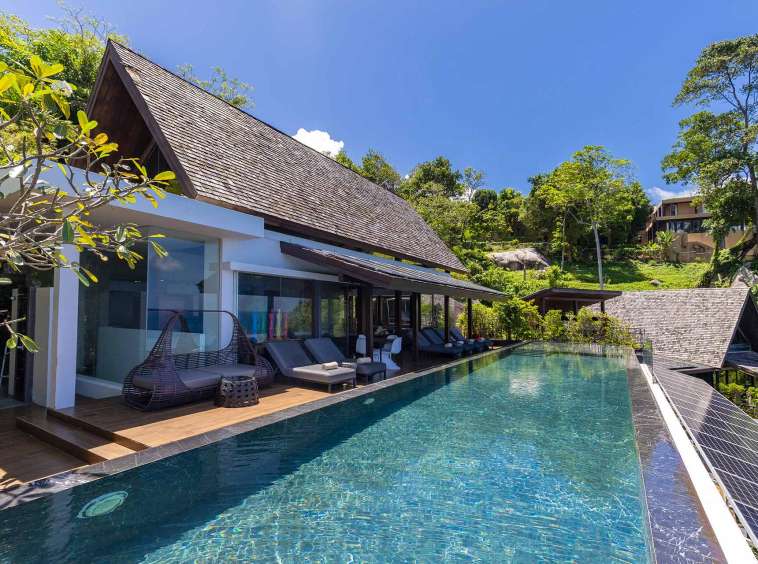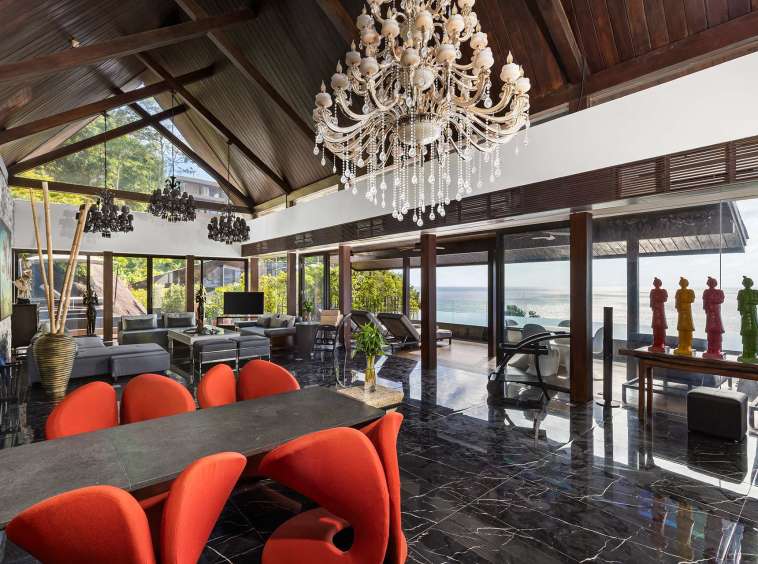 The outdoor space is a true highlight, featuring lush gardens and an impressive infinity pool that overlooks the stunning seaview. The privacy elements are thoughtfully integrated, creating a peaceful oasis perfect for leisure and gatherings. The covered pool in the second building offers a retreat for relaxation, complementing the vibrant outdoor lifestyle in Phuket.