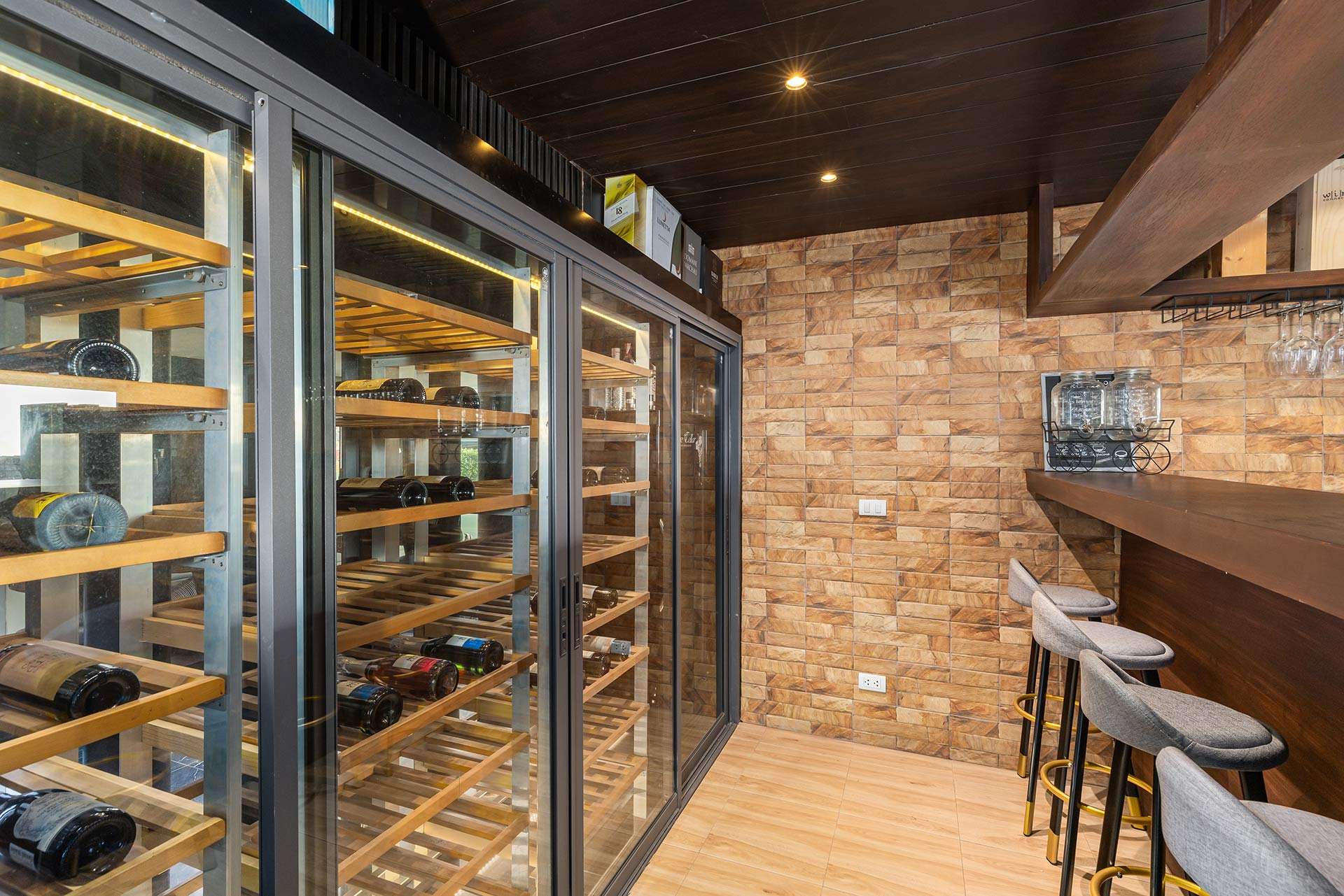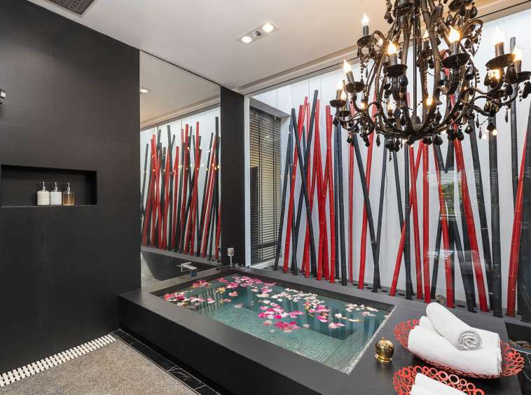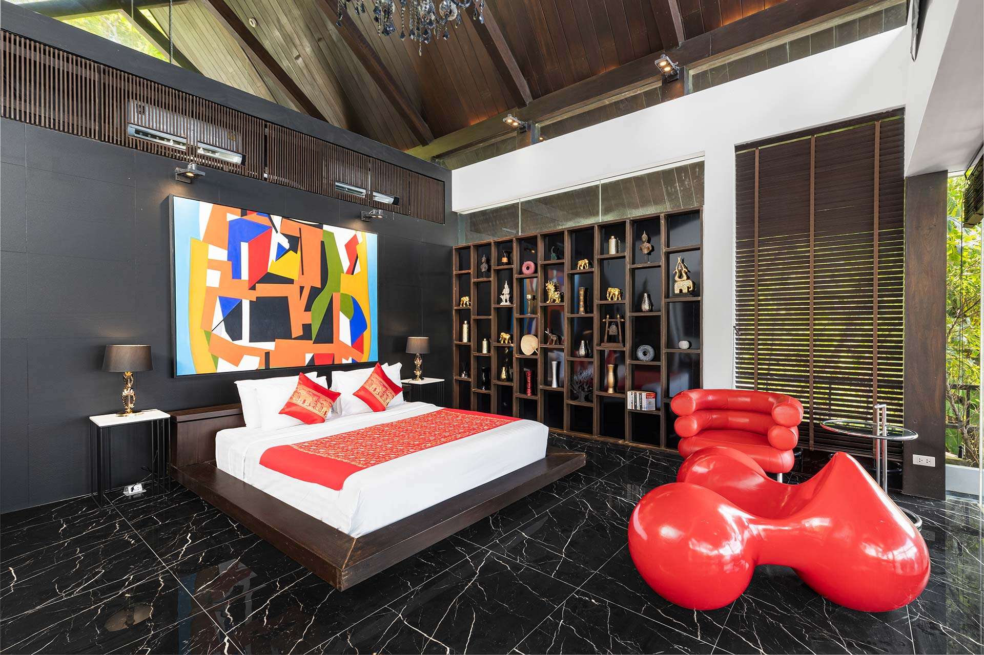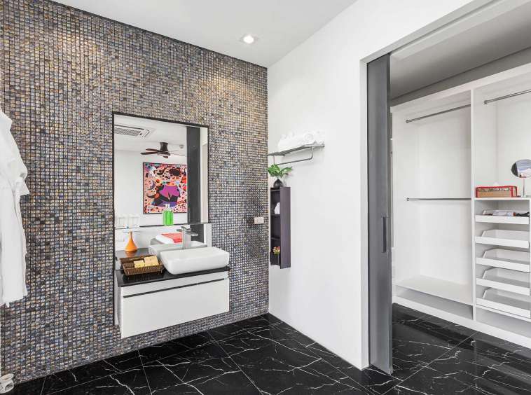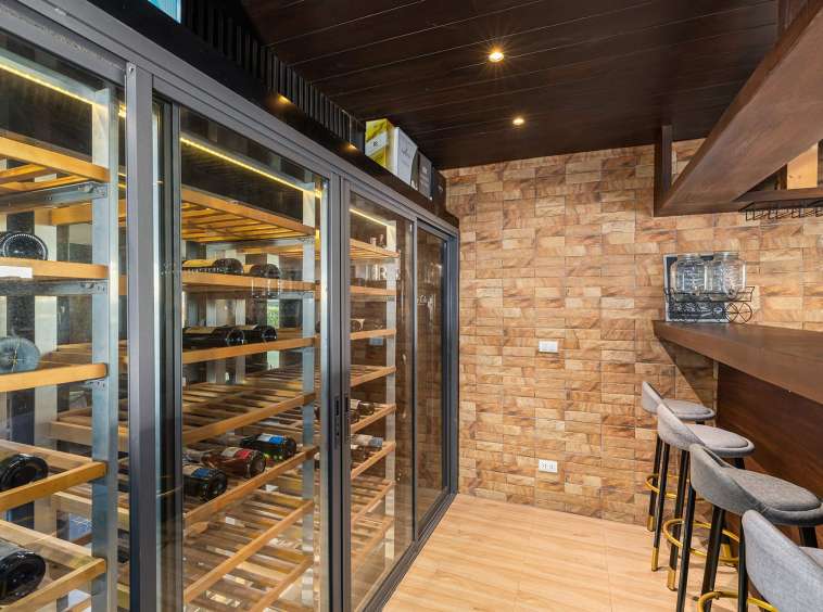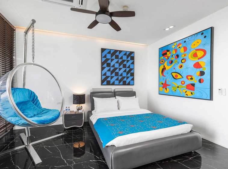 This beautiful villa showcases a sophisticated layout, with the main building encompassing five elegant bedrooms, each exuding tranquillity and style. The design follows a Thai Contemporary aesthetic, integrating traditional charm with modern luxury. The atmosphere within the villa is serene, featuring high-quality materials and finishes throughout, providing a warm and inviting space to relax and entertain.