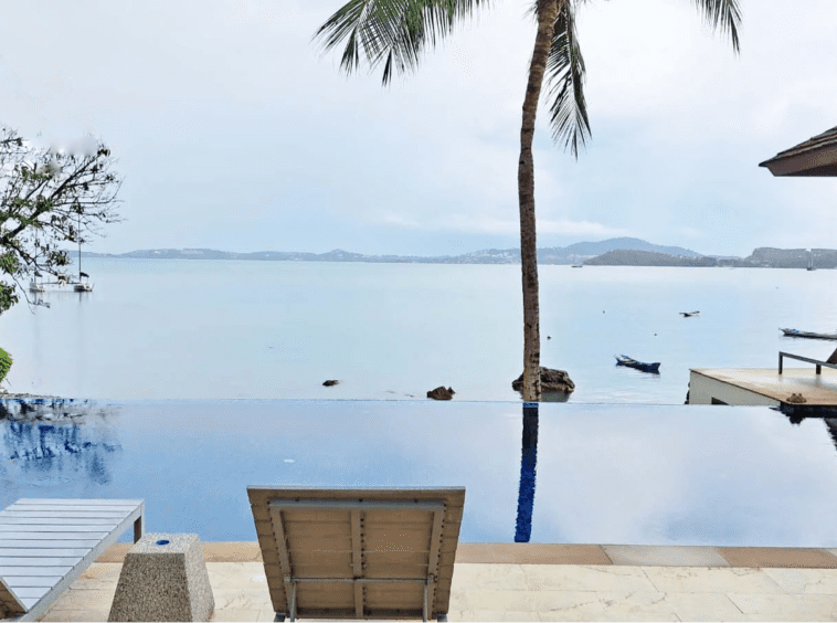 Bophut beachfront villa, Luxury property for sale, Contemporary Thai style, Infinity pool, Direct beach access, Secure gated community, Office building, Spectacular views, Real estate, Property investment, Tropical paradise.