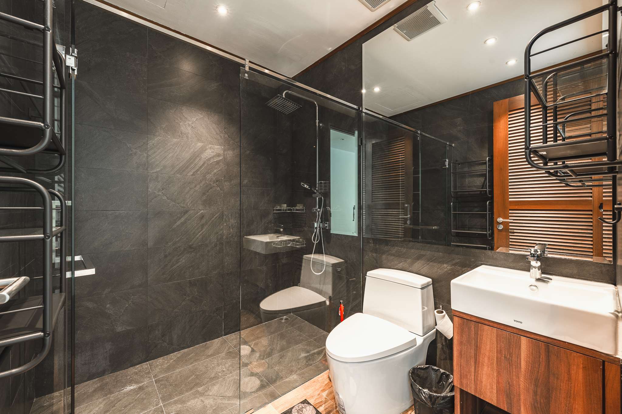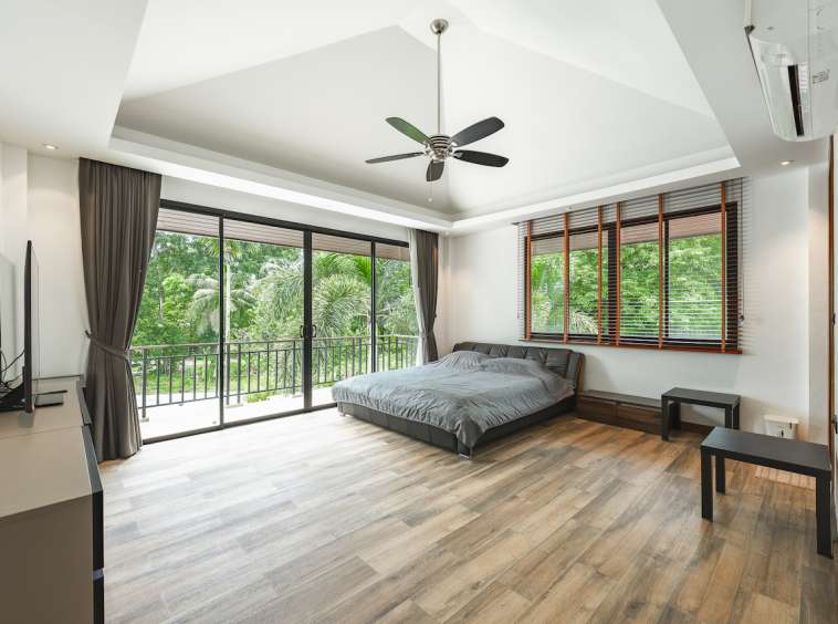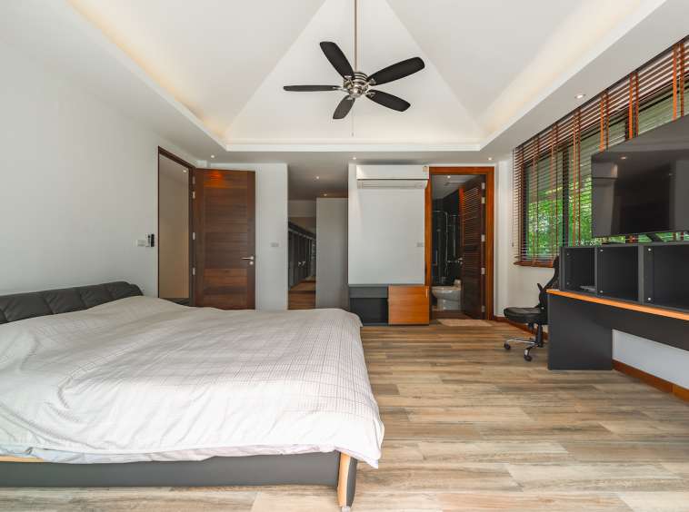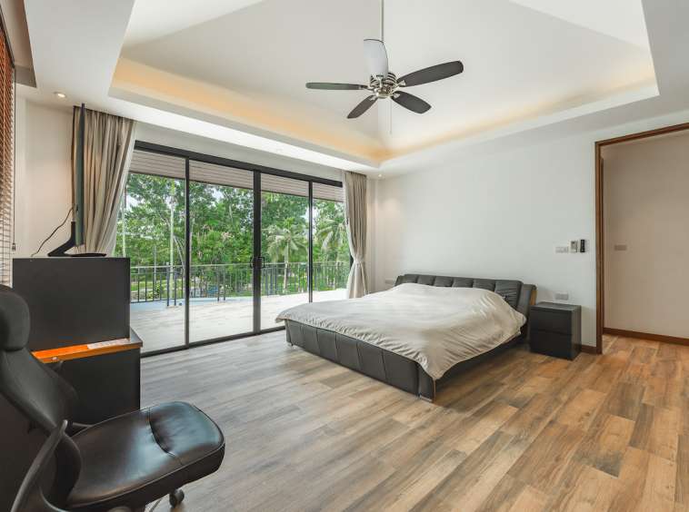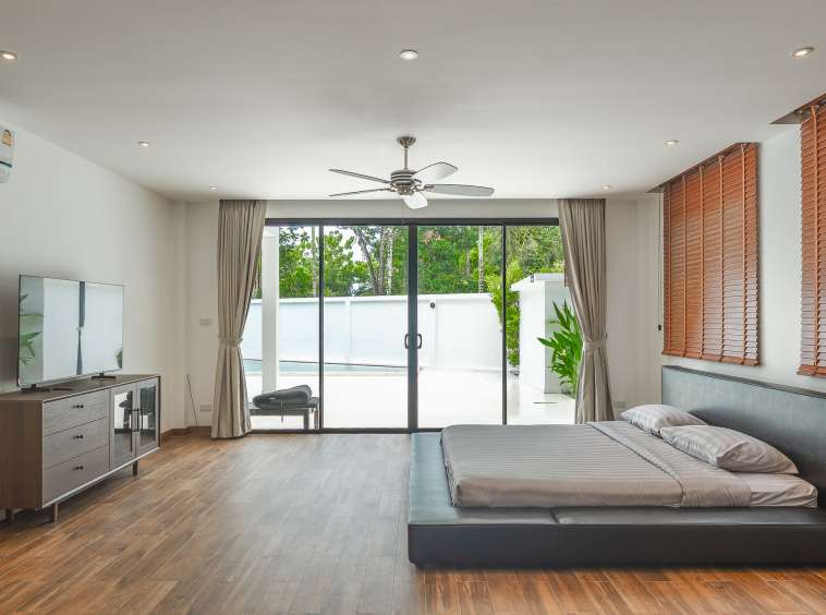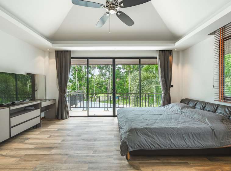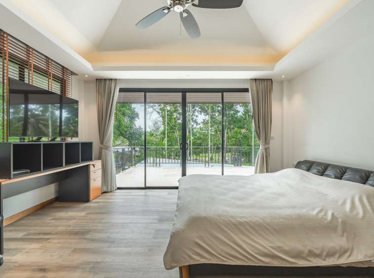The spacious balcony doubles as a Sala with panoramic views, offering the perfect spot to unwind and enjoy Phuket’s tropical atmosphere.