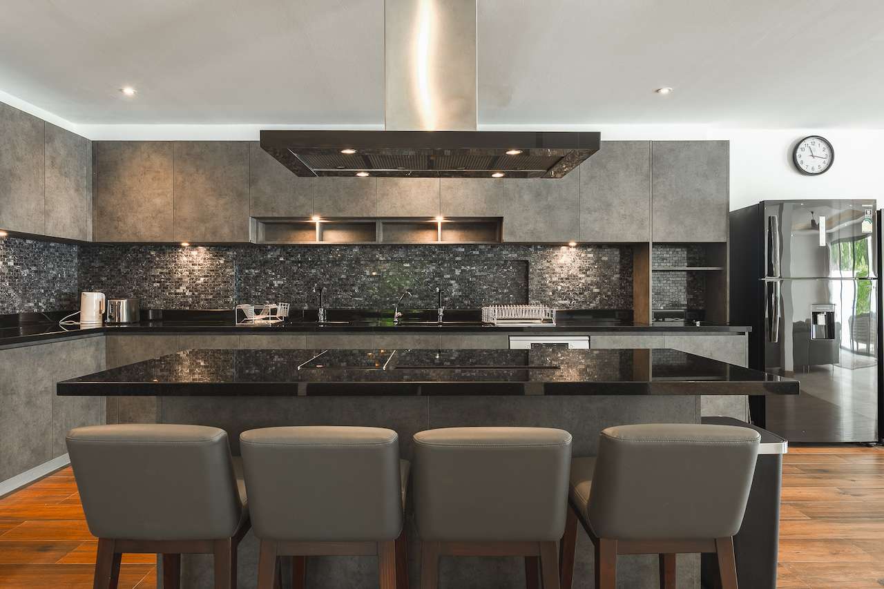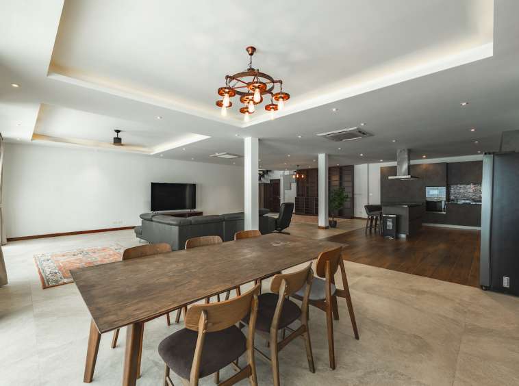 The villa welcomes you with a bright open-plan layout, connecting the living and dining areas seamlessly. A modern kitchen with premium appliances makes cooking and entertaining effortless. Large aluminum and glass doors open to the outdoor area, creating a smooth indoor-outdoor flow.