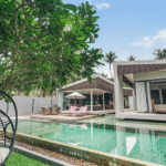 Exterior and Surroundings: Enjoy the breathtaking sunset views from the round-shaped swimming pool and the convenience of an outside shower. The villa is set in a well-planned landscape, providing a perfect beachfront retreat.
