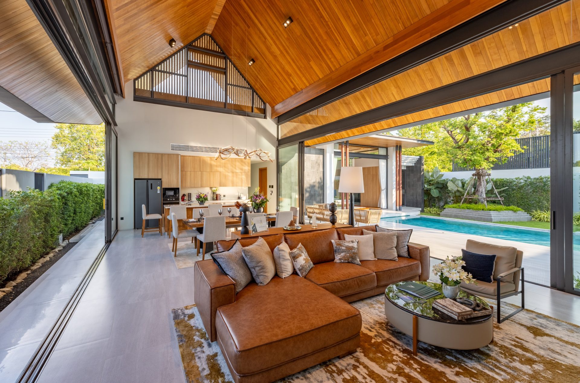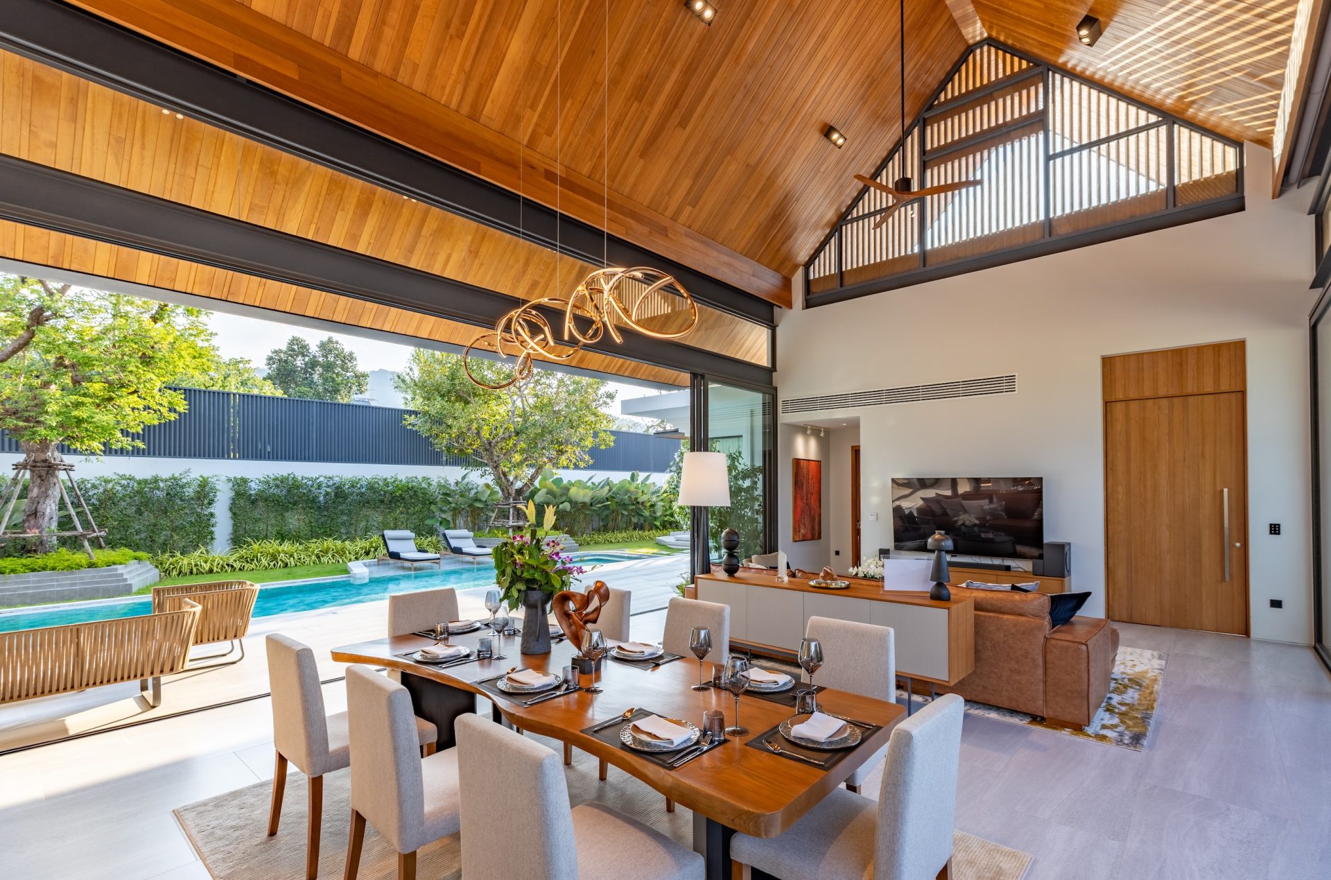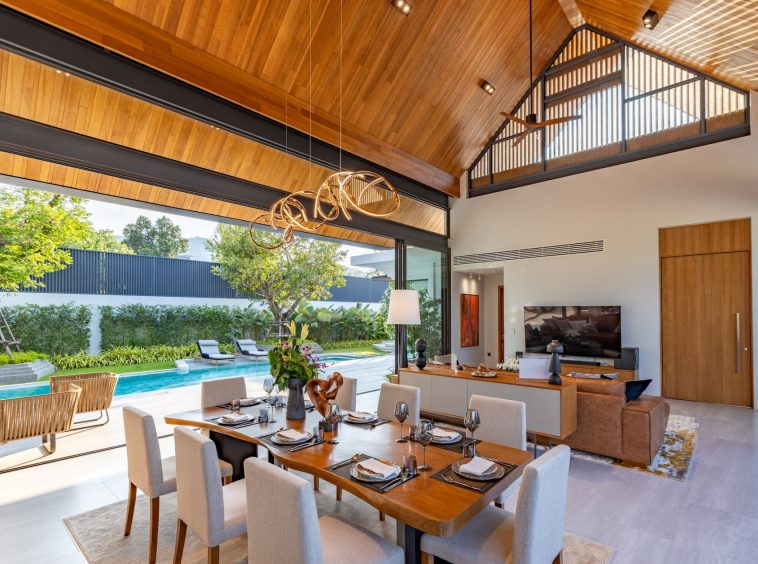 The villa boasts a sophisticated flow and is characterised by a harmonious blend of traditional Thai elements and cutting-edge contemporary architecture. The high ceilings combined with strategic window placements foster an atmosphere of openness and tranquillity. Luxurious finishes and thoughtfully selected materials enhance the refined aesthetic, making every moment within the villa a delight.