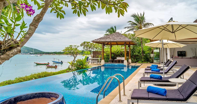 Koh Samui beachfront villa, Bophut property, luxury living, private pool, modern amenities, Fisherman’s Village, 5-star resort, contemporary design, beachfront lifestyle, property for sale.