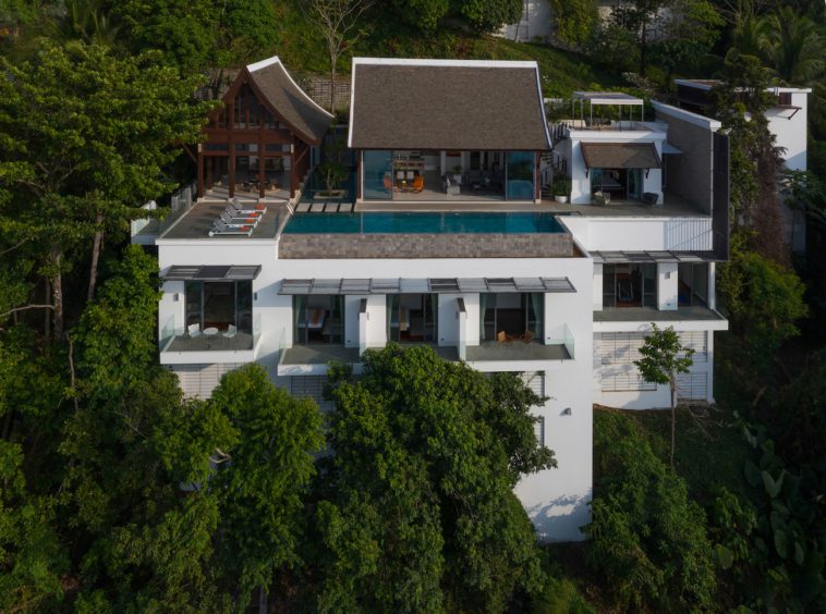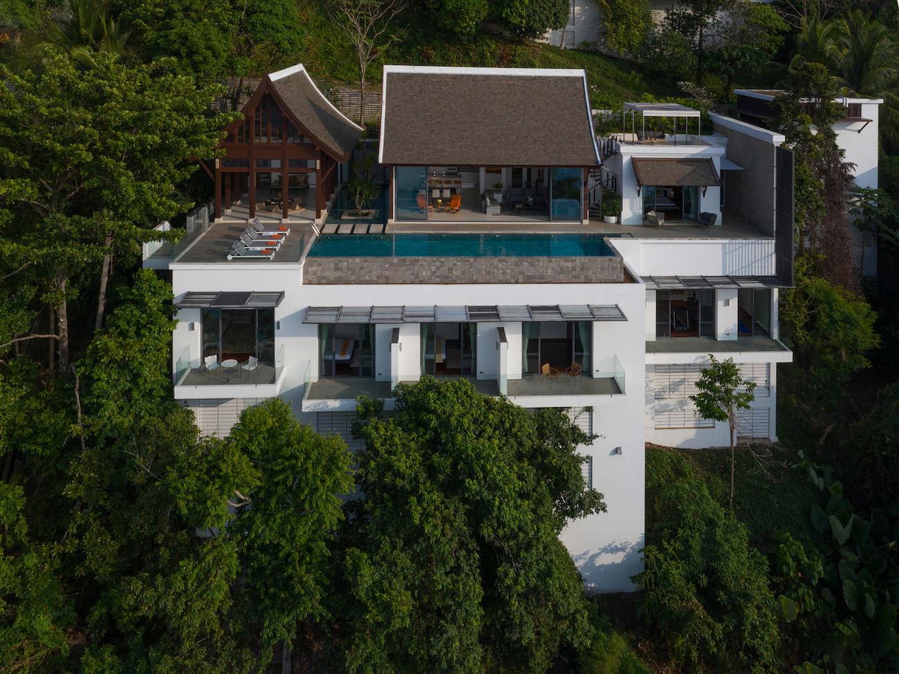 As you step into this magnificent villa for the first time, it’s the incredible panoramic views that grab your attention. The turquoise-tiled infinity pool appears to flow mystically into the deep green Andaman Sea and clear cobalt skies, contrasting with the golden hues of Naithon Beach. This fantastic four-bedroom ultra-luxe villa is set on the craggy northwest coast of Phuket and lies within an exclusive hillside estate of 19 villas.