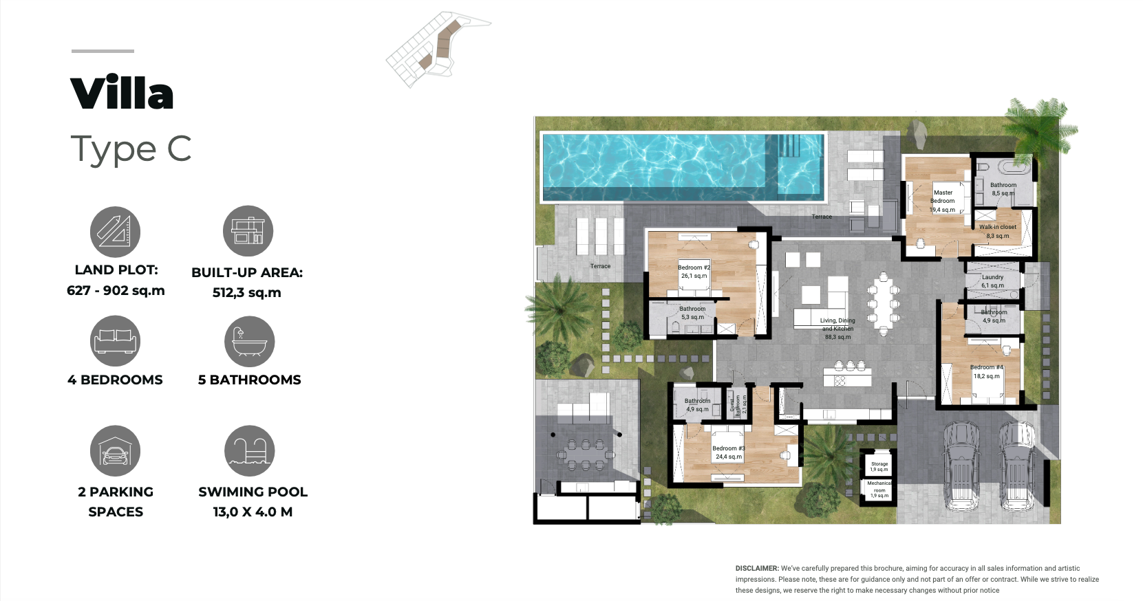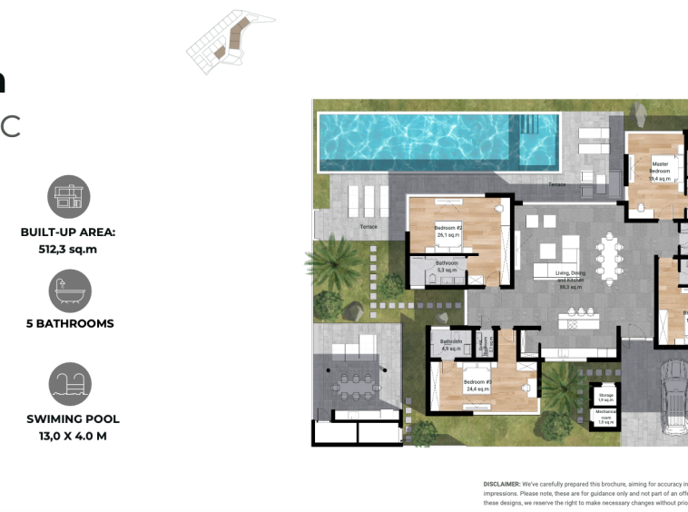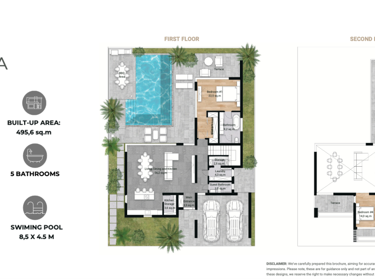 This stunning villa showcases a sophisticated and modern architectural style, featuring an open-plan layout that encourages seamless indoor-outdoor living. The interiors are adorned with high-quality materials and finishes, ensuring an elegant atmosphere throughout. Well-designed living spaces flow effortlessly, with each room evoking a sense of warmth and comfort, perfect for entertaining or quiet family living.