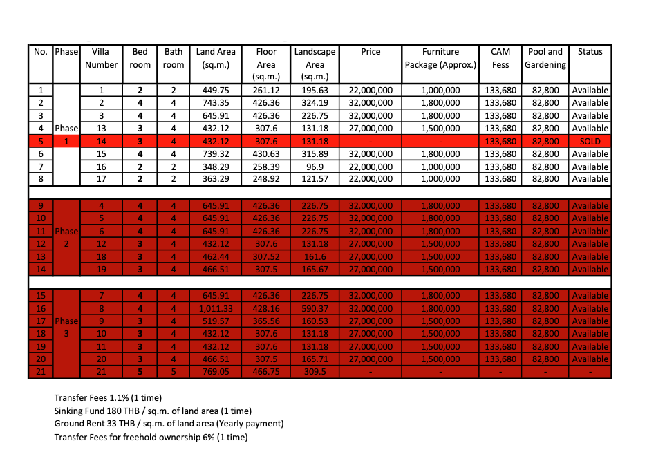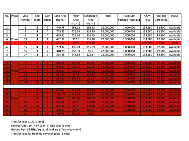 For more info, please call Sandra: +66898677154, Mai: +66 87 912 0505, Bey: +66 61 176 8978