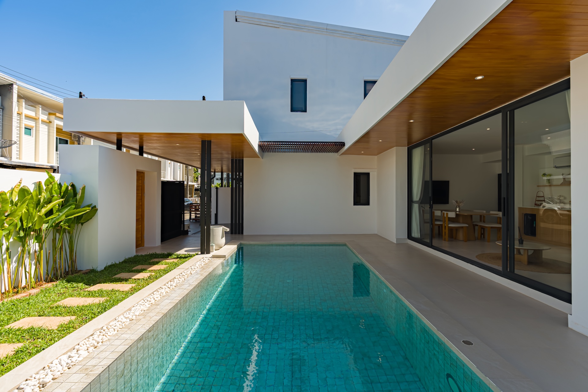This well-designed 3-bedroom, 2-bathroom home sits on a 220 sqm land plot in one of Phuket’s most sought-after residential areas. Thoughtfully laid out for comfortable family living, the property features a private swimming pool (7 × 3.5 metres), two separate living areas, and a spacious built-in kitchen with ample storage, ideal for everyday living and entertaining.