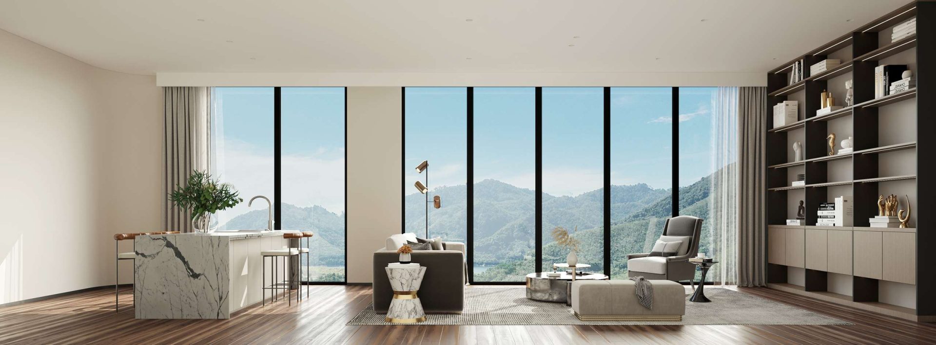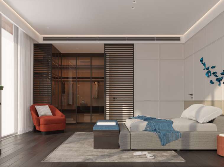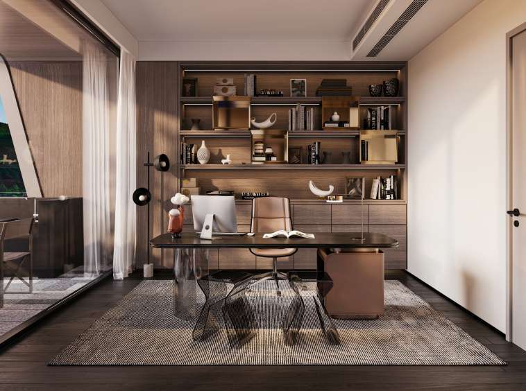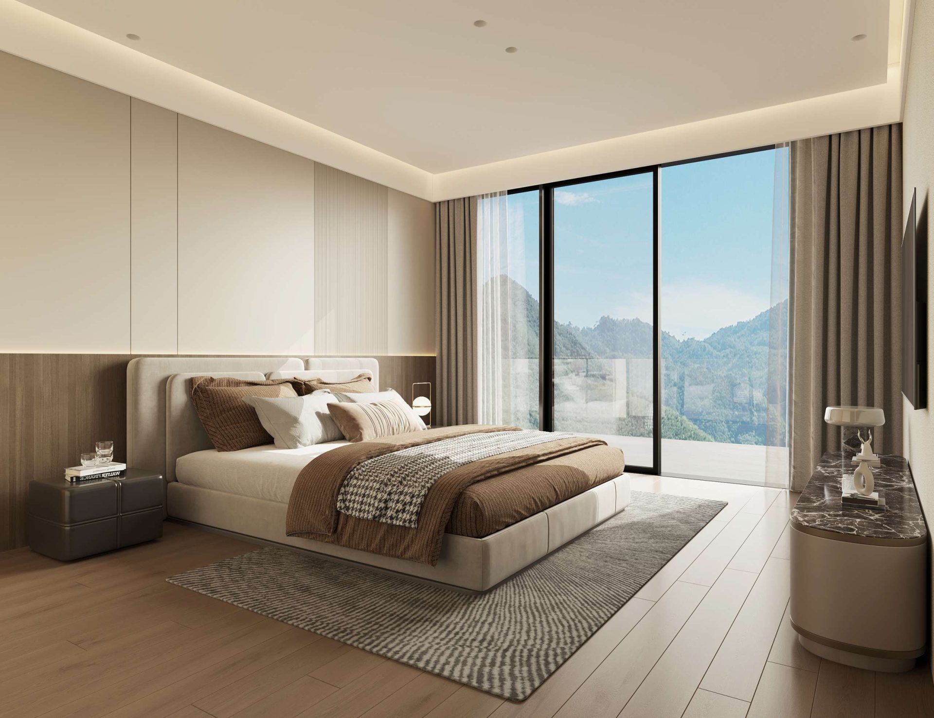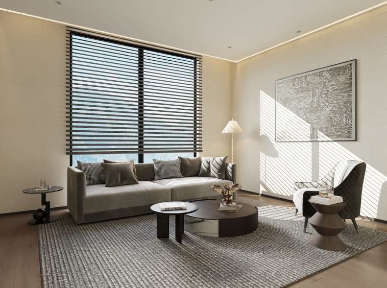 Each villa reflects a minimalist design philosophy where “less is more.” The interiors embrace an elegant palette of greens, browns, and grays, inspired by the rocks, trees, and earth tones of the surrounding landscape. This thoughtful color harmony creates a soothing and balanced atmosphere throughout the home.