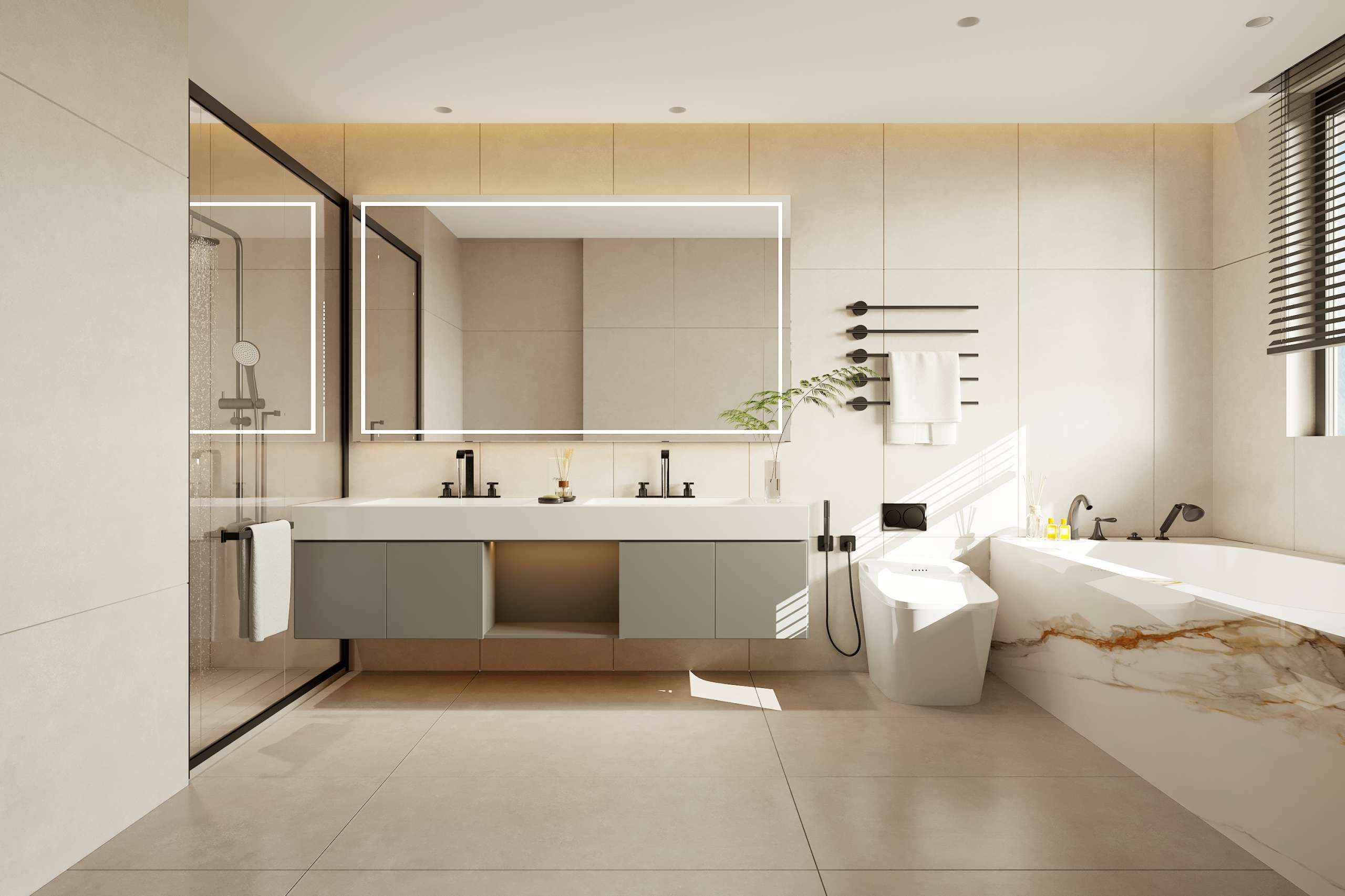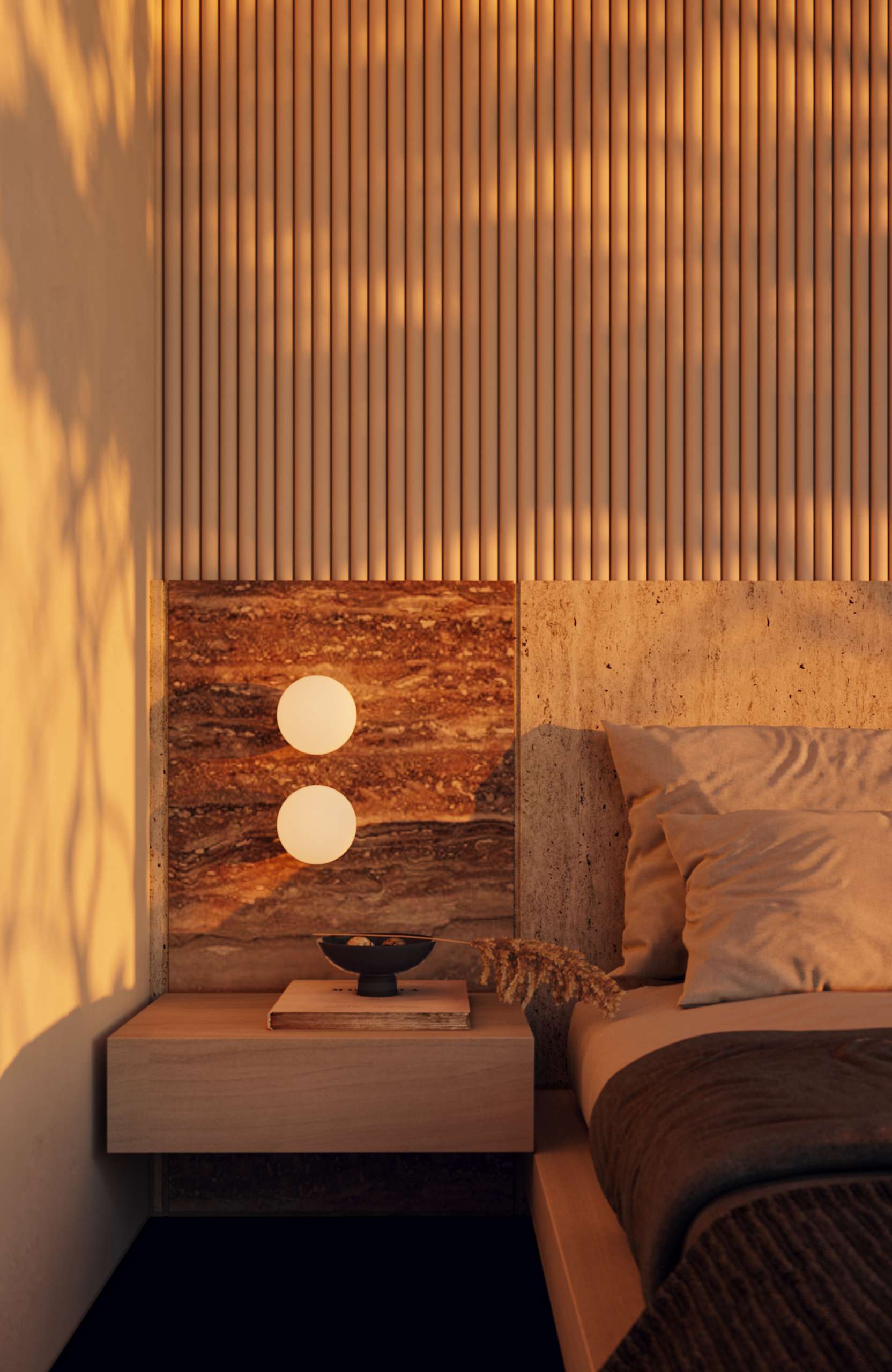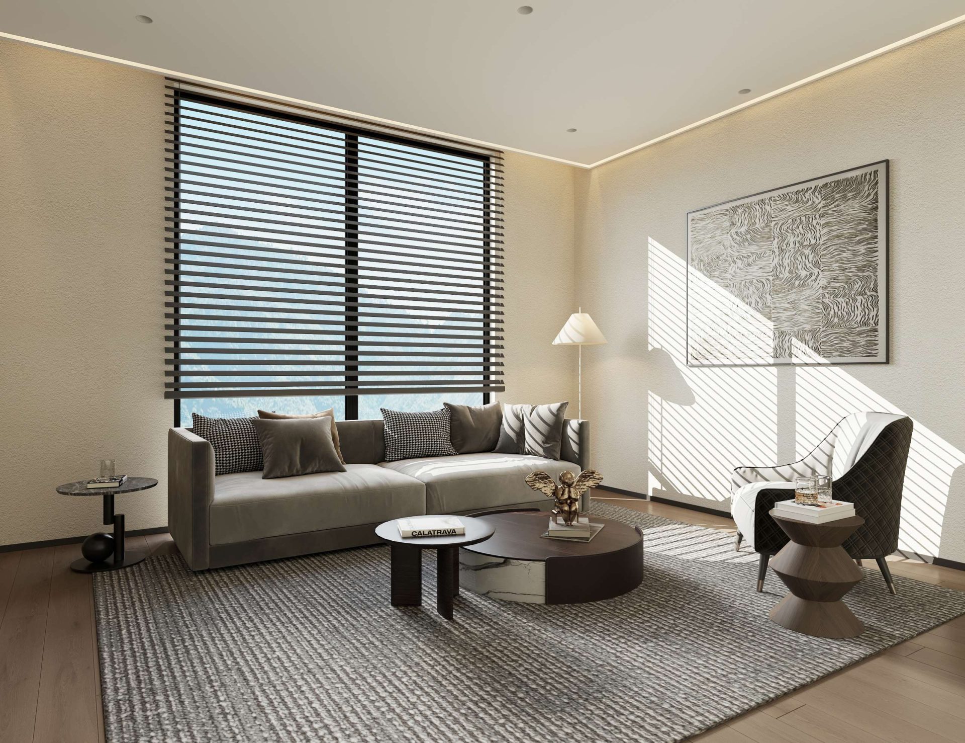 Each villa reflects a minimalist design philosophy where “less is more.” The interiors embrace an elegant palette of greens, browns, and grays, inspired by the rocks, trees, and earth tones of the surrounding landscape. This thoughtful color harmony creates a soothing and balanced atmosphere throughout the home.