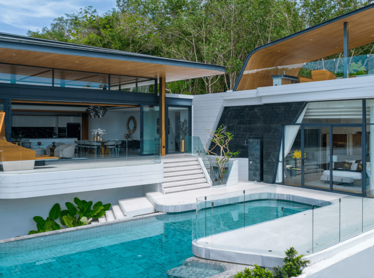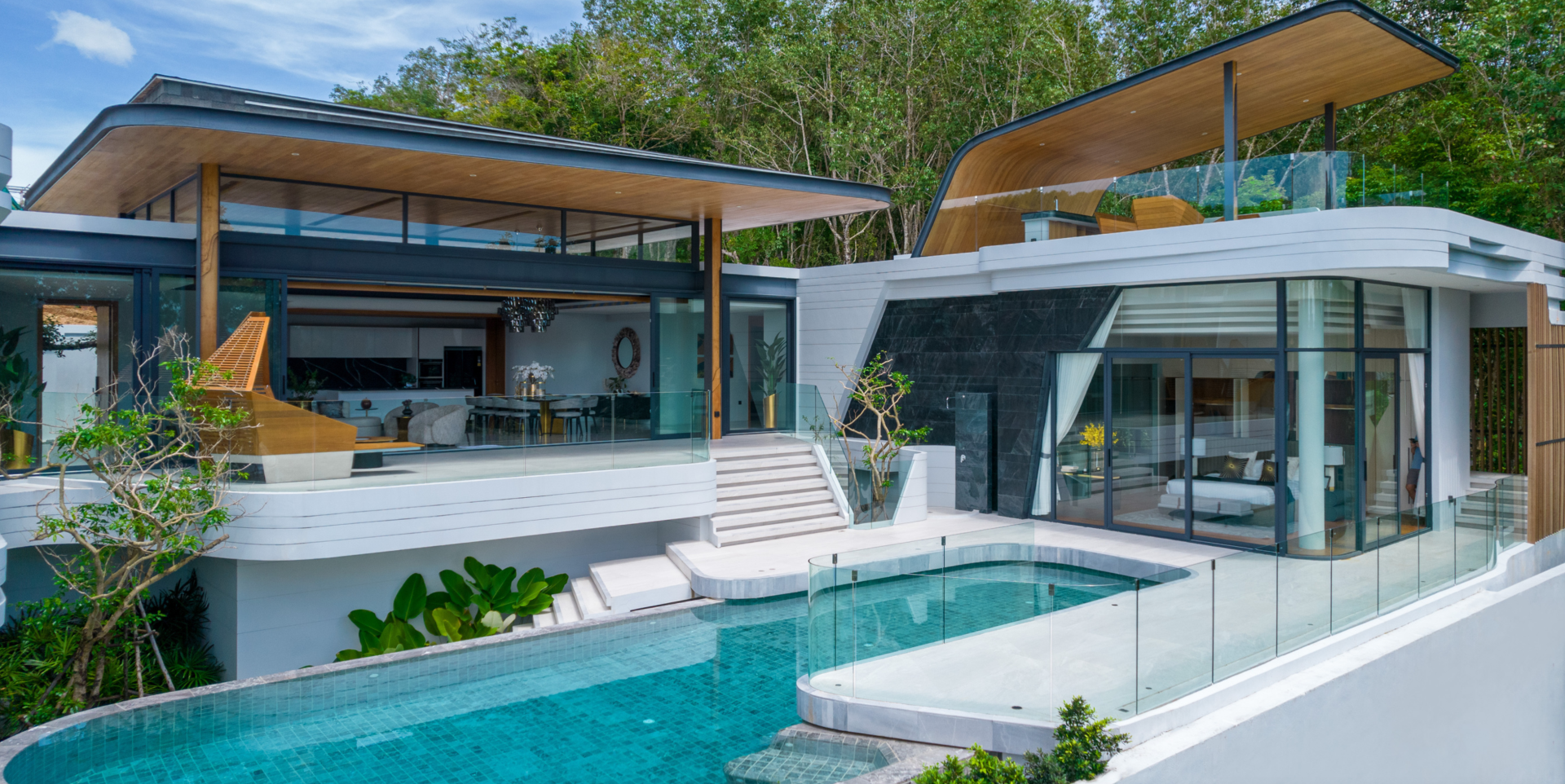 Another high-end residence, these stunning modern sea view villas, are nestled in a tranquil green valley facing a beautiful beach. The modern yet functional design and exquisite furnishings make the estate stand out in the real estate market with its upscale-modern luxury style villas.