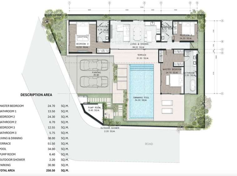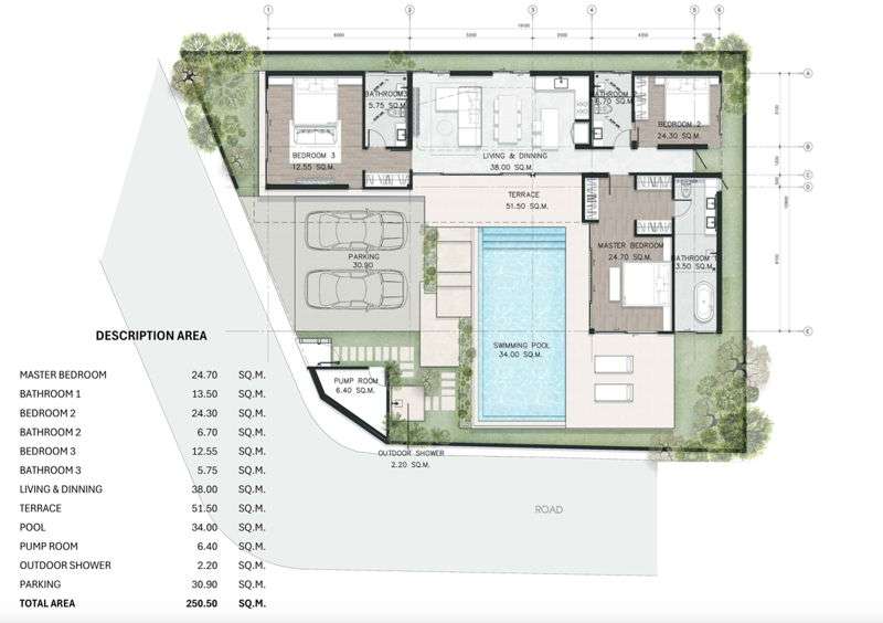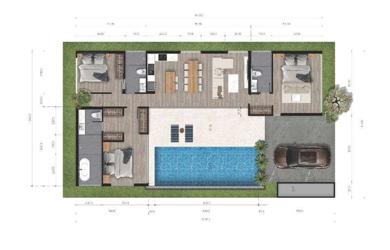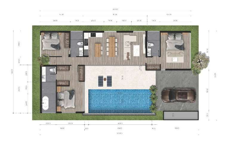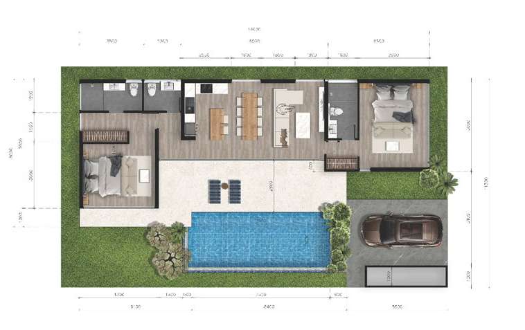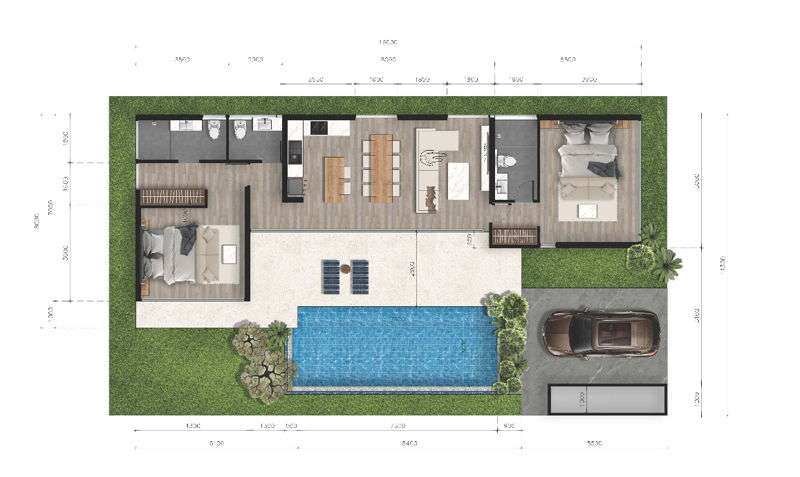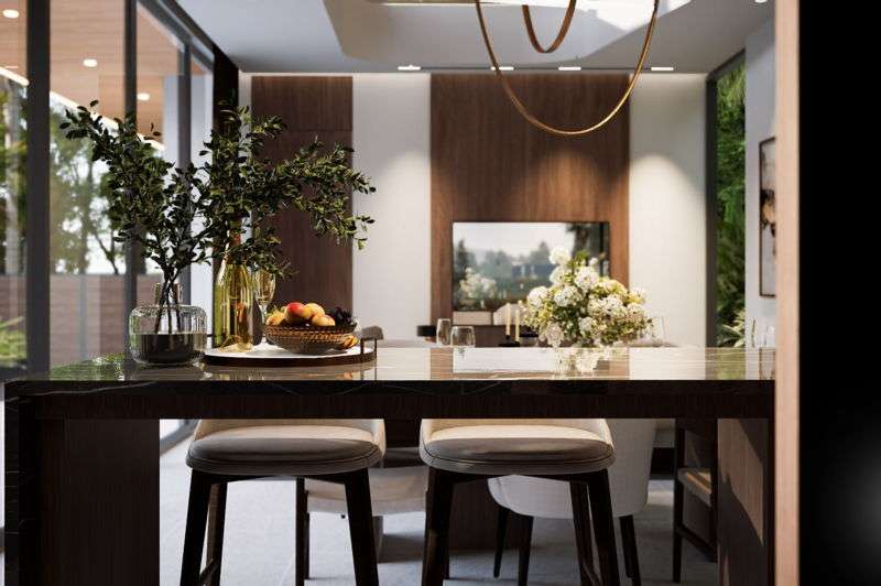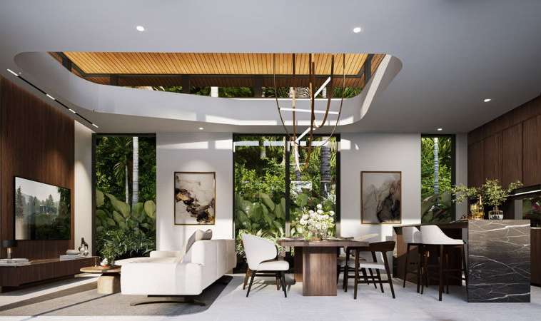 The villas embody a refined Modern Tropical architectural style that harmonises with the natural surroundings. Each villa boasts an intelligent layout, featuring open plan living and dining areas that promote a seamless flow between spaces. High-quality materials are meticulously chosen, ensuring a sophisticated yet relaxing atmosphere. This blend of elegance and comfort creates an inviting setting for both relaxation and entertaining.