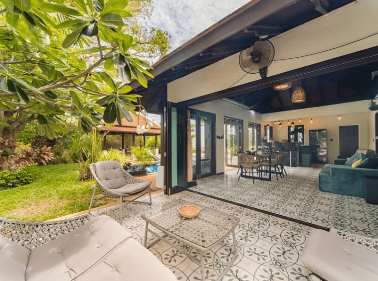 Bang Rak villa, Balinese-style property, Beachfront residence, Renovated pool villa, Island lifestyle, Koh Samui real estate, Tranquil retreat, Home cinema, Thai Limited Company, Property for sale.