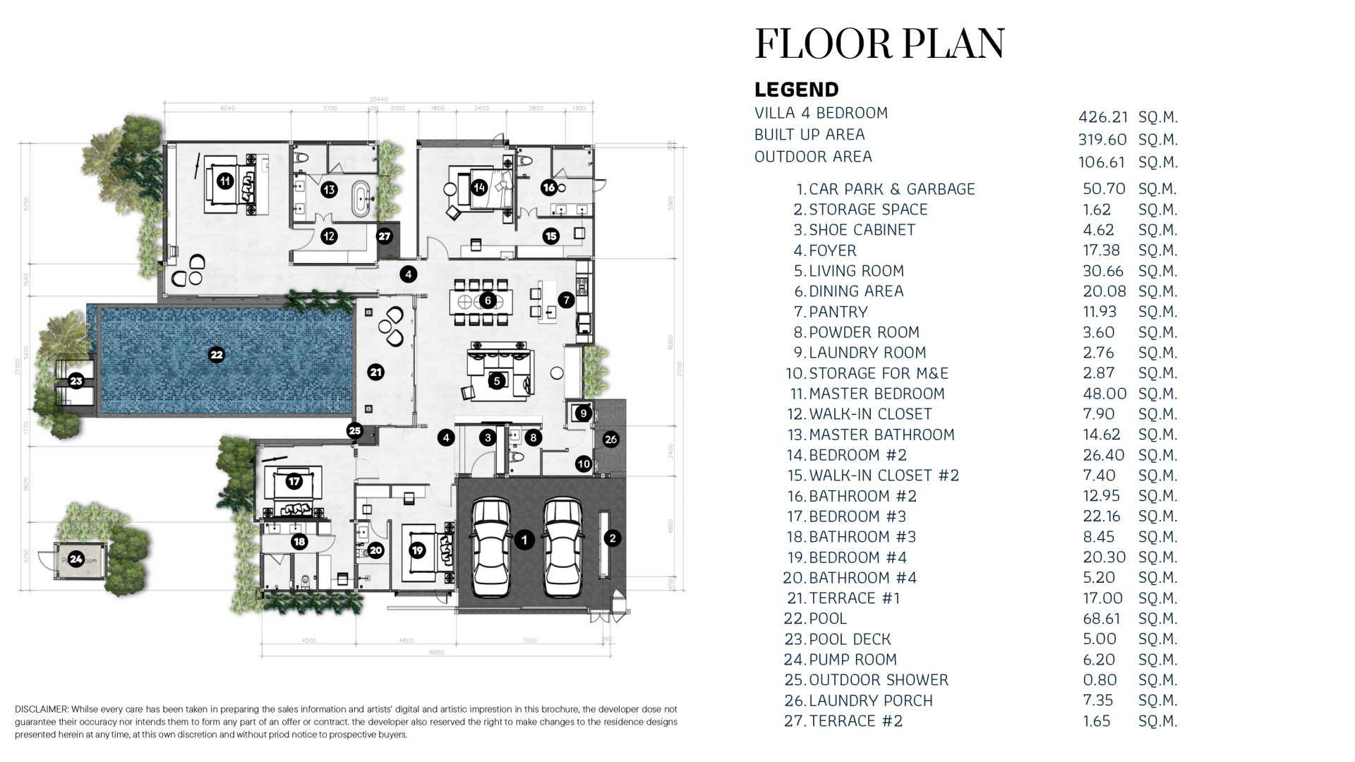 The outdoor area is a true paradise, featuring a private pool designed for relaxation and entertainment. The landscaped garden surrounds the property, enhancing privacy. An outdoor dining and BBQ space invites alfresco dining under the stars, creating unforgettable memories.
