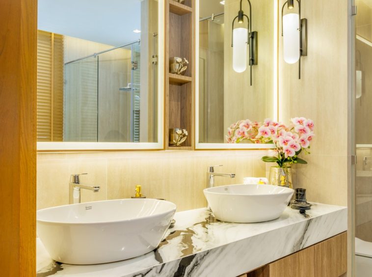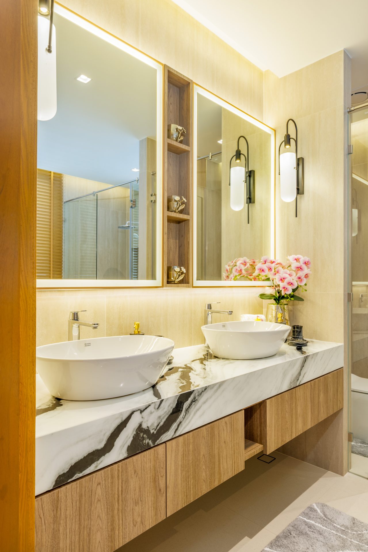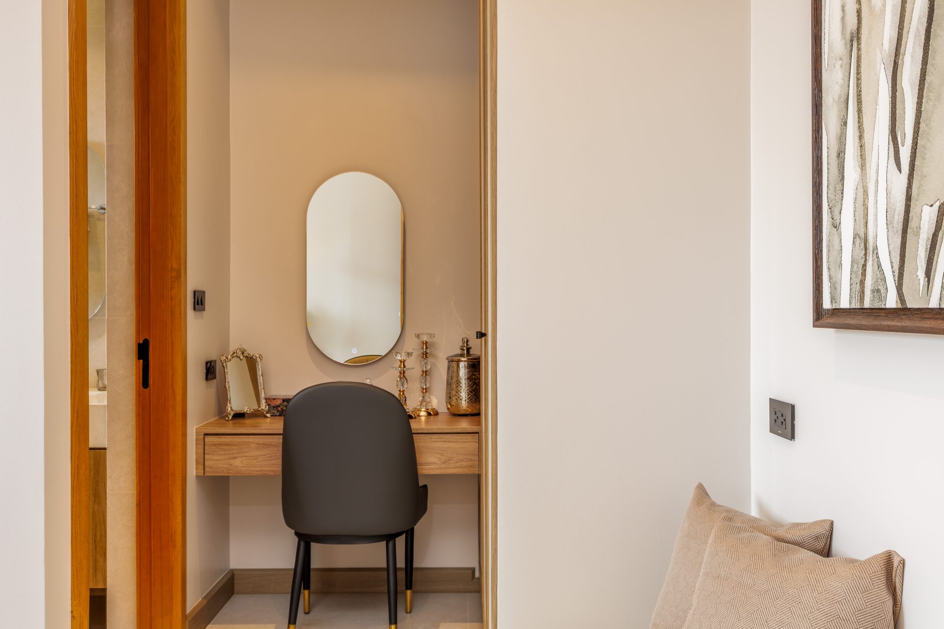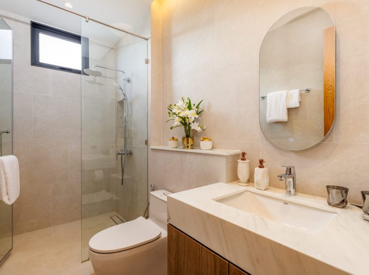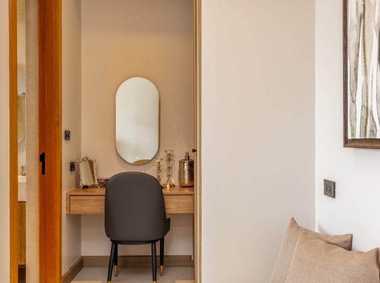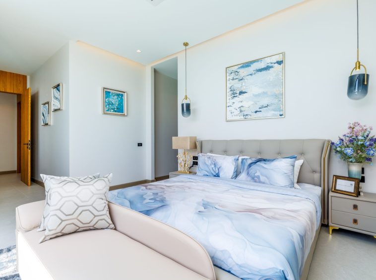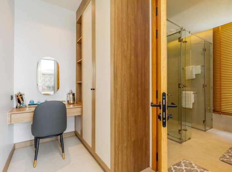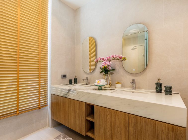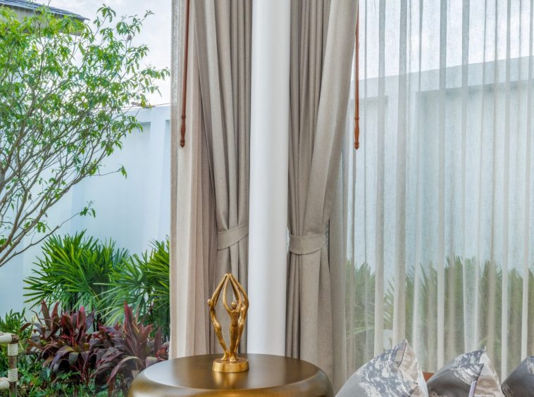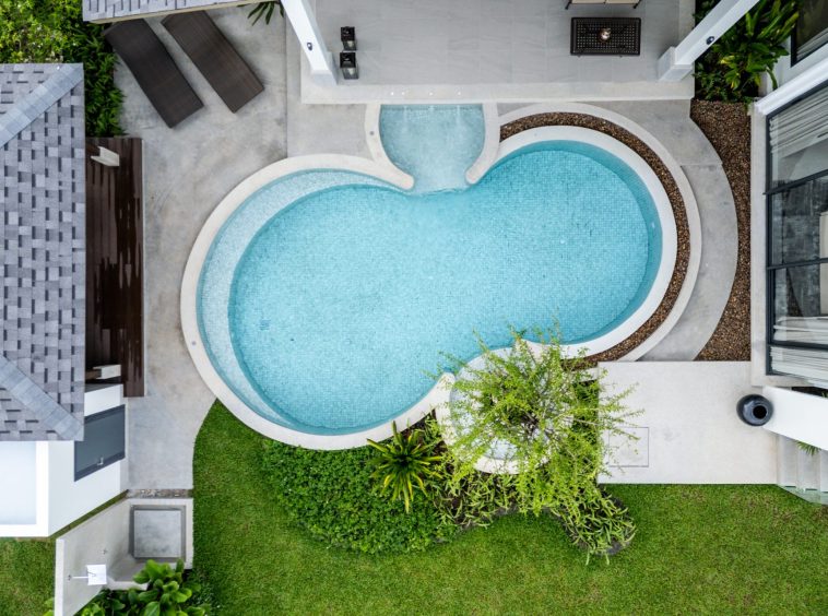 The villa’s design artfully incorporates iconic gabled roofs, reflecting the architectural heritage of Thailand’s Ayutthaya era. The interior flows effortlessly, allowing natural light to illuminate the open-plan living spaces. High-quality materials enhance the overall atmosphere, promoting a sense of calm and tranquillity within.