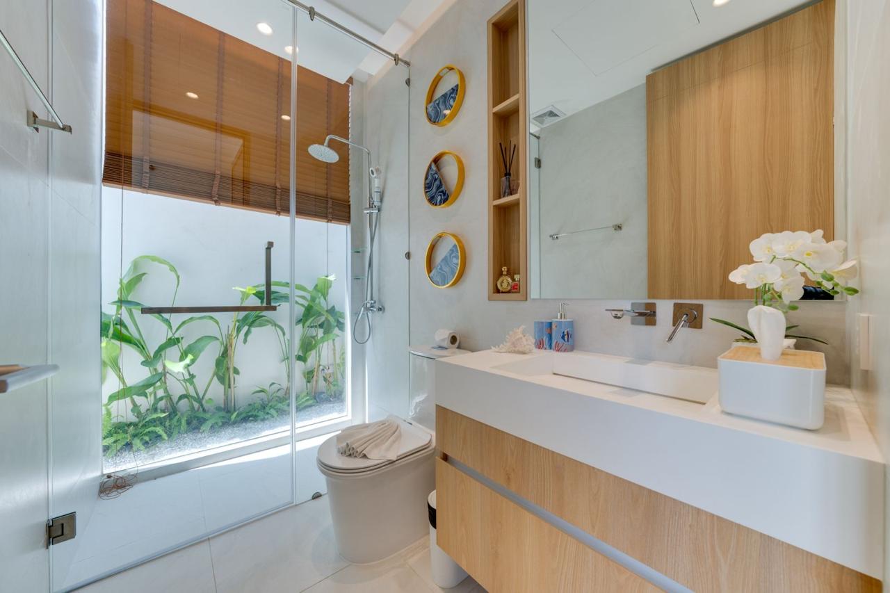 This villa features three spacious bedrooms and three modern bathrooms, all finished with high-quality materials. Each bedroom offers privacy, natural light, and direct views of the outdoor areas.