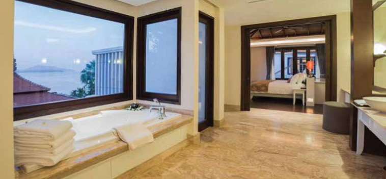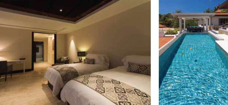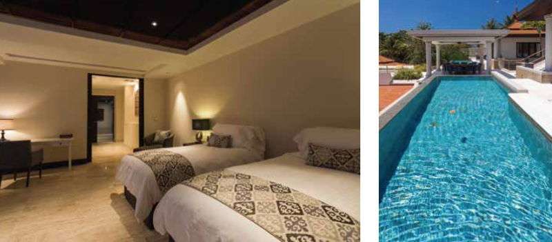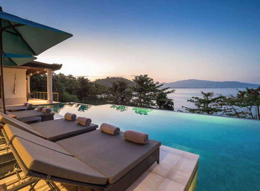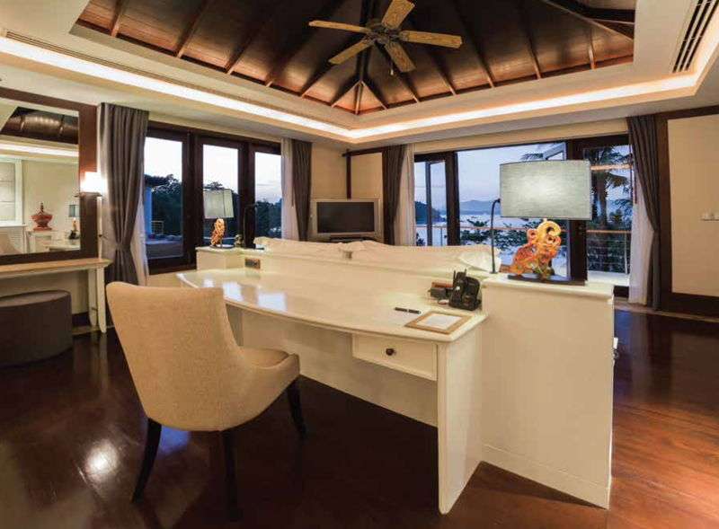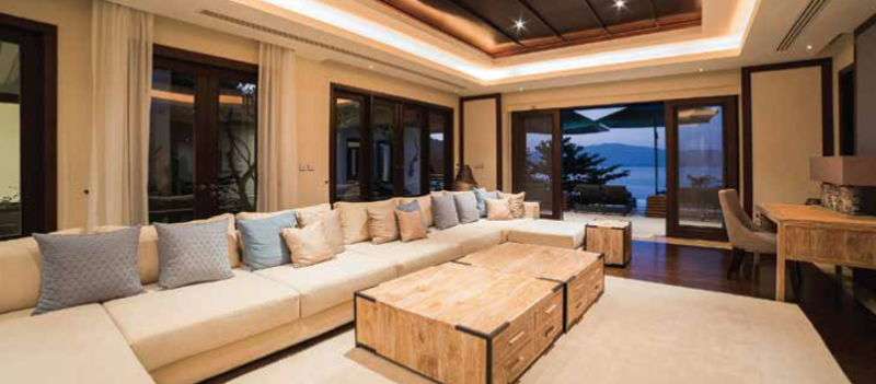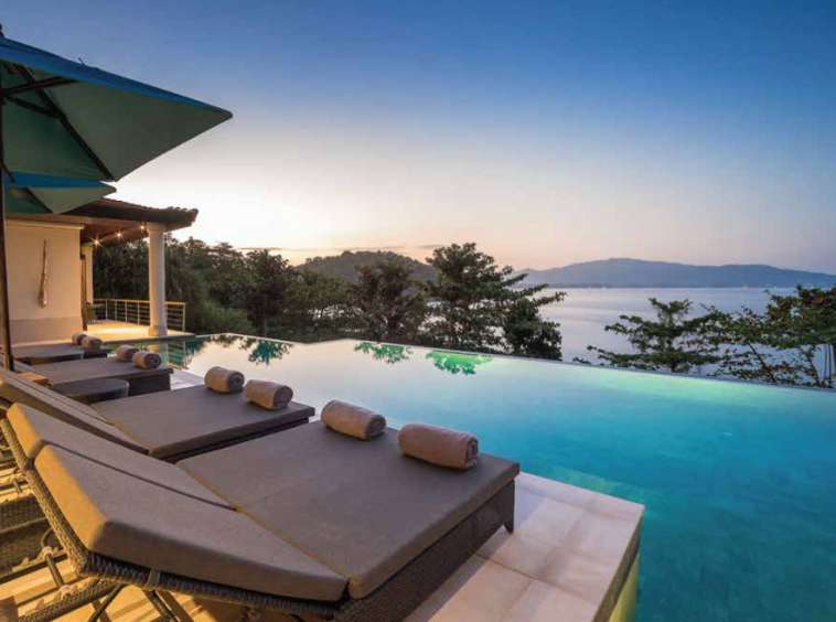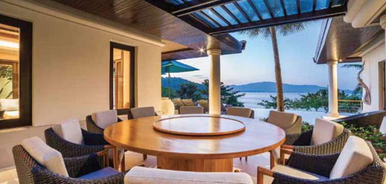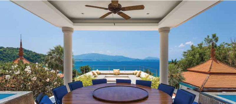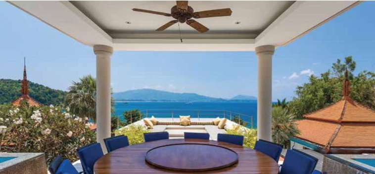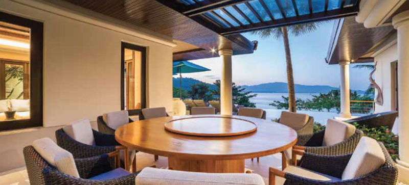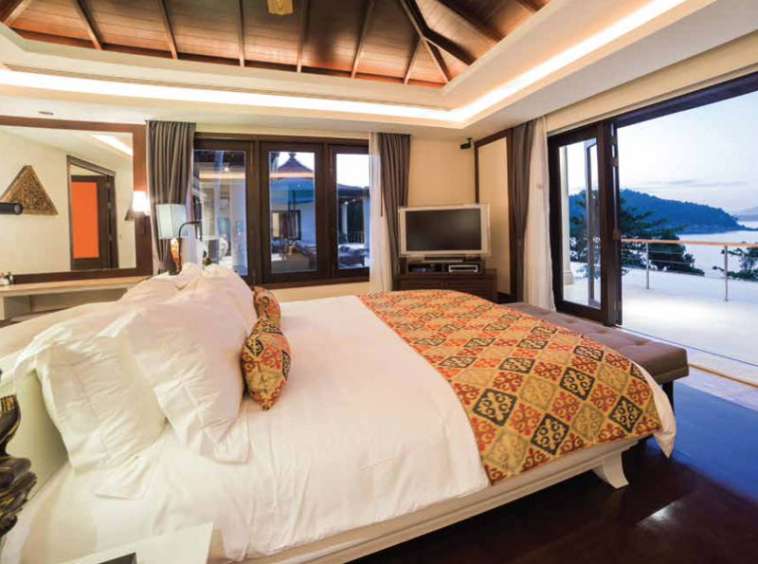 The stunning Thai Style Villa sits directly above the Andaman Sea, offering both privacy and easy access to facilities. The villa occupies an area of roughly 2,400 square metres, much of it filled with blooming tropical foliage.