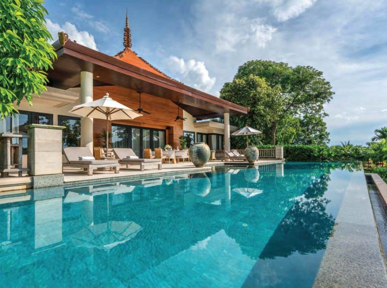Facilities include an arrival lounge, a spa, a gym, tennis courts and concierge lounges. The villa is surrounded by a tropical forest and exotic gardens, just 15 minutes from Phuket airport. This pool villa is designed with simple, luxurious interiors and offers a wonderful sense of privacy. Attention to detail defines the experience throughout the property, including a unique natural grey marble infinity pool and suites that overlook the Andaman Sea and its spectacular year-round sunsets. The villa rises gently through a tropical garden entrance and carport to an open-plan living and dining area that leads out to a large deck and the main 18-meter infinity pool, with views across the sea. The villa sits on approximately 1,760 square metres of land and has a total built-up area of 760 square metres including the pool and decks, and is a very short stroll to the resort’s main facilities. On either side of the enclosed living and dining areas are the two guest bedrooms with large bathrooms and lovely sea views. The villa’s smaller third bedroom is perfect for a child or nanny and is located next to the villa’s fully equipped modern kitchen.